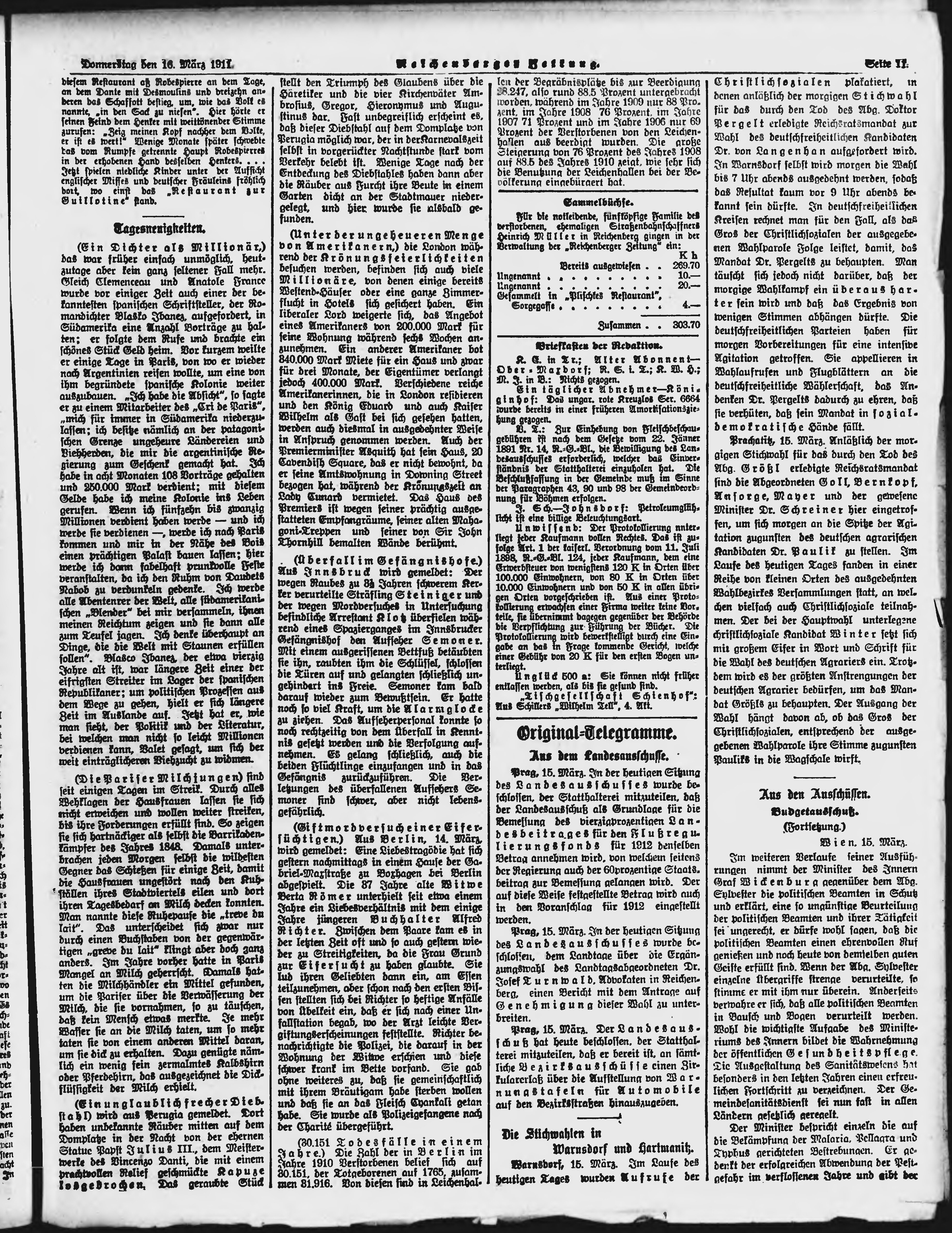 * Datum vydání výtisku: 16.3.1911 Číslo výtisku: 64 Poznámky k výtisku: ranní vydání;