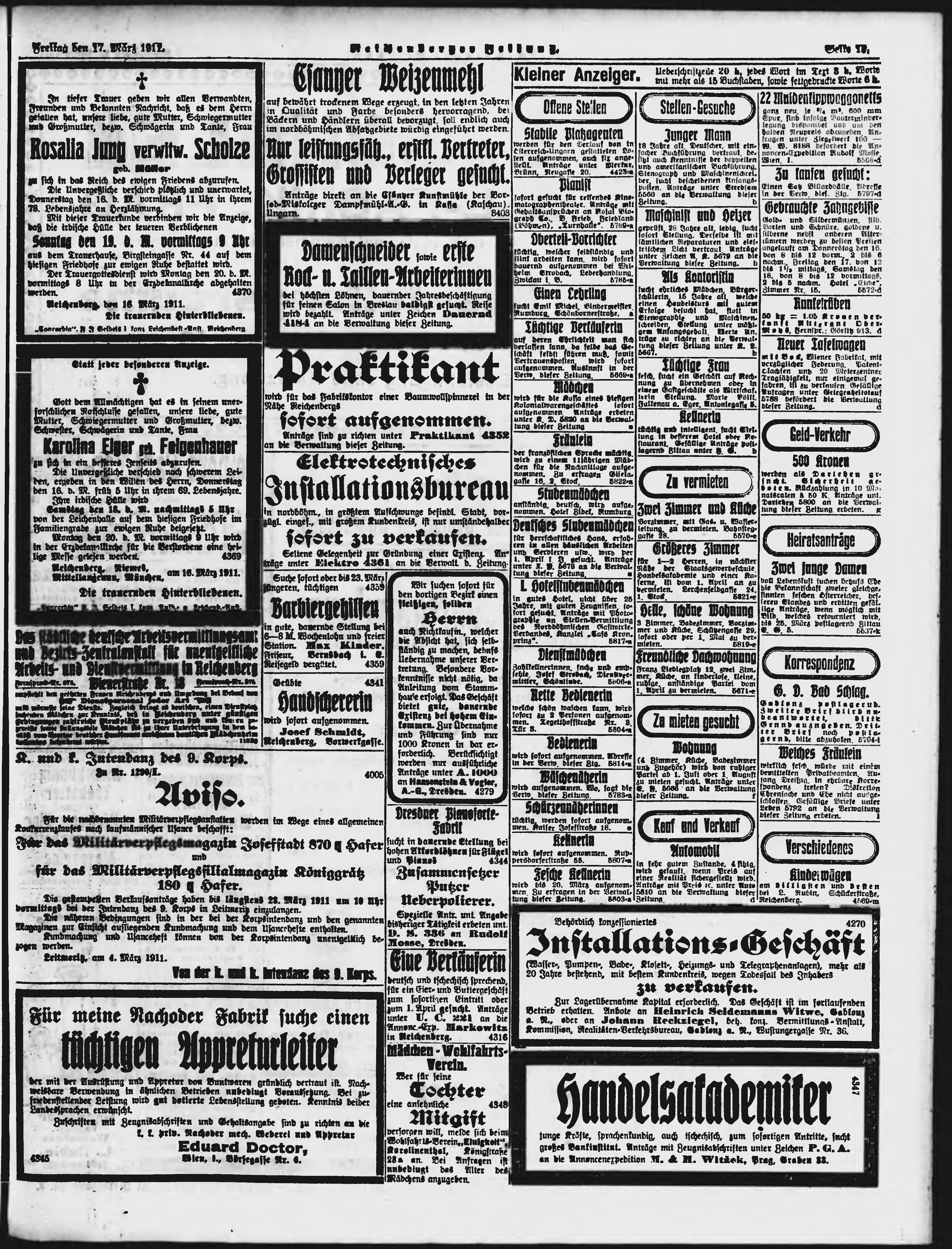* Datum vydání výtisku: 17.3.1911 Číslo výtisku: 65 Poznámky k výtisku: ranní vydání;