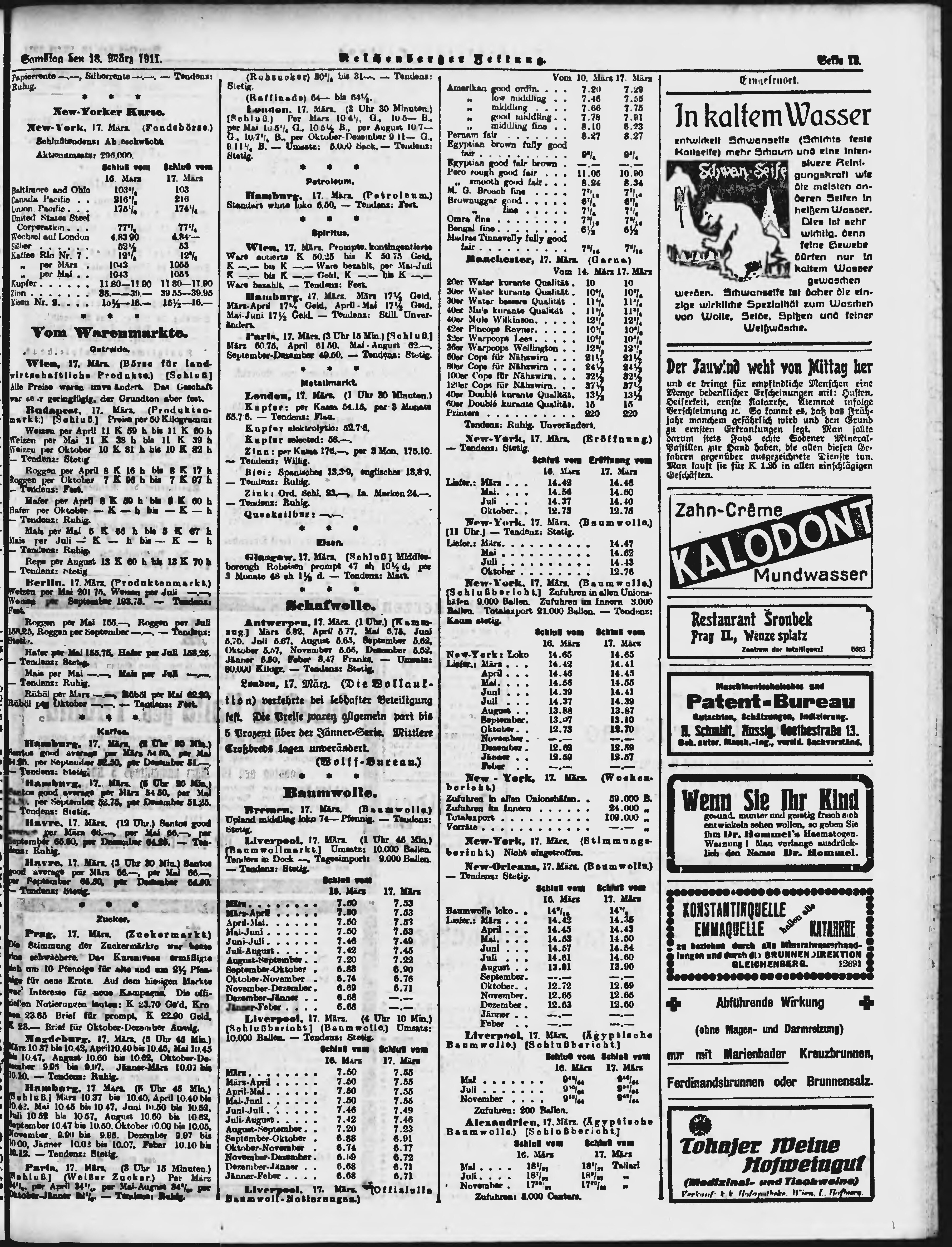 * Datum vydání výtisku: 18.3.1911 Číslo výtisku: 66 Poznámky k výtisku: ranní vydání;