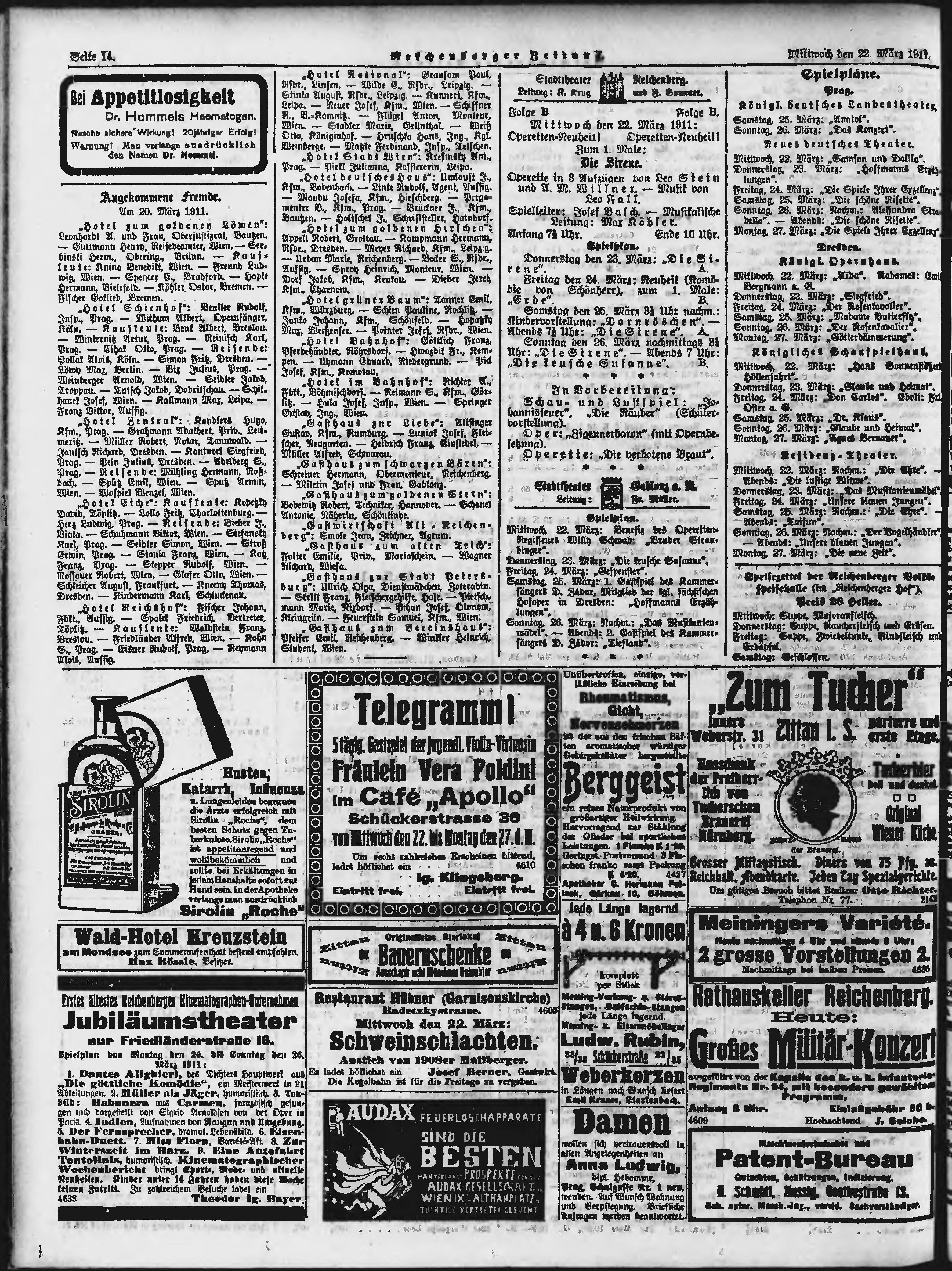 * Datum vydání výtisku: 22.3.1911 Číslo výtisku: 69 Poznámky k výtisku: ranní vydání; nekonzistence číslování stran;