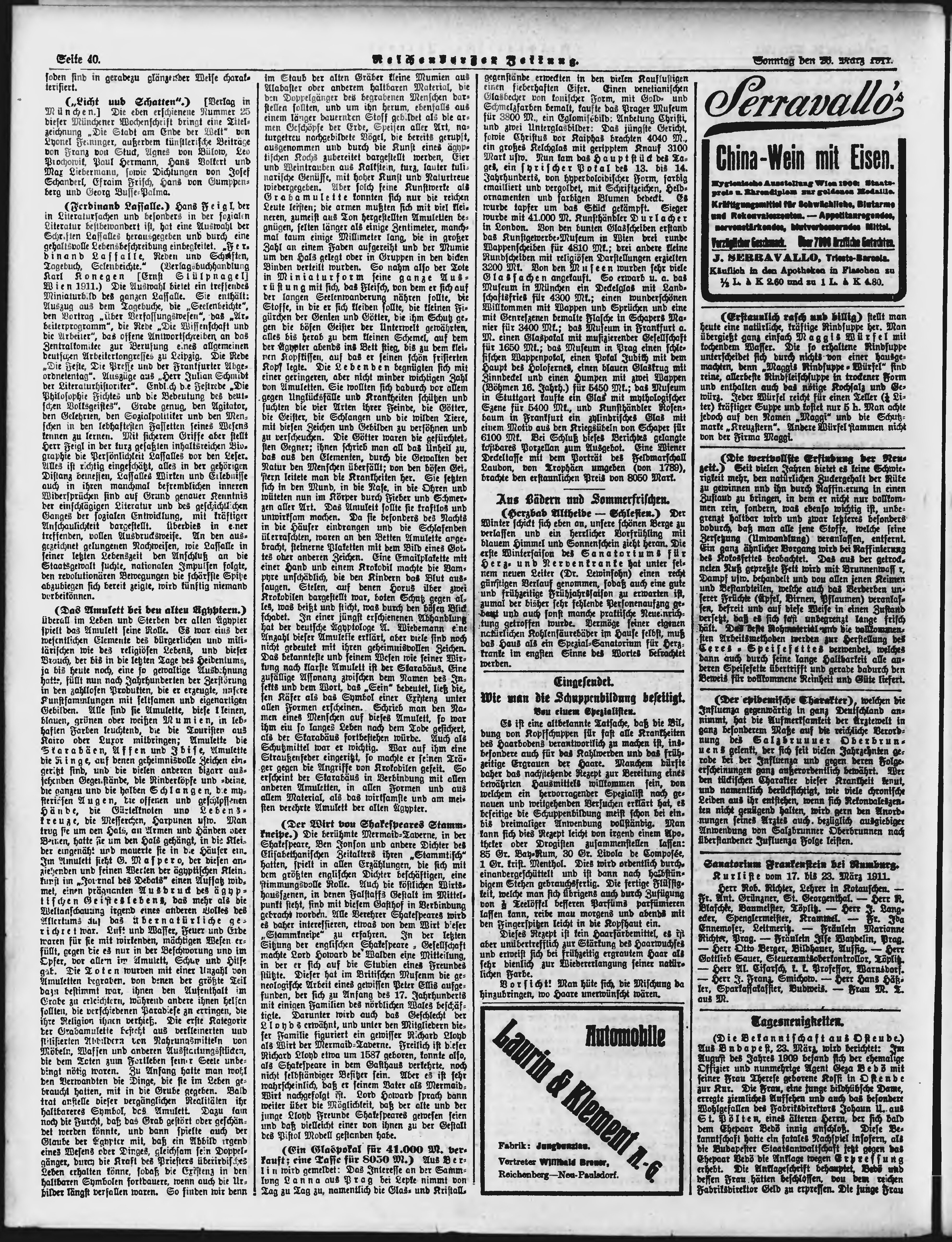 * Datum vydání výtisku: 26.3.1911 Číslo výtisku: 73 Poznámky k výtisku: ranní vydání;