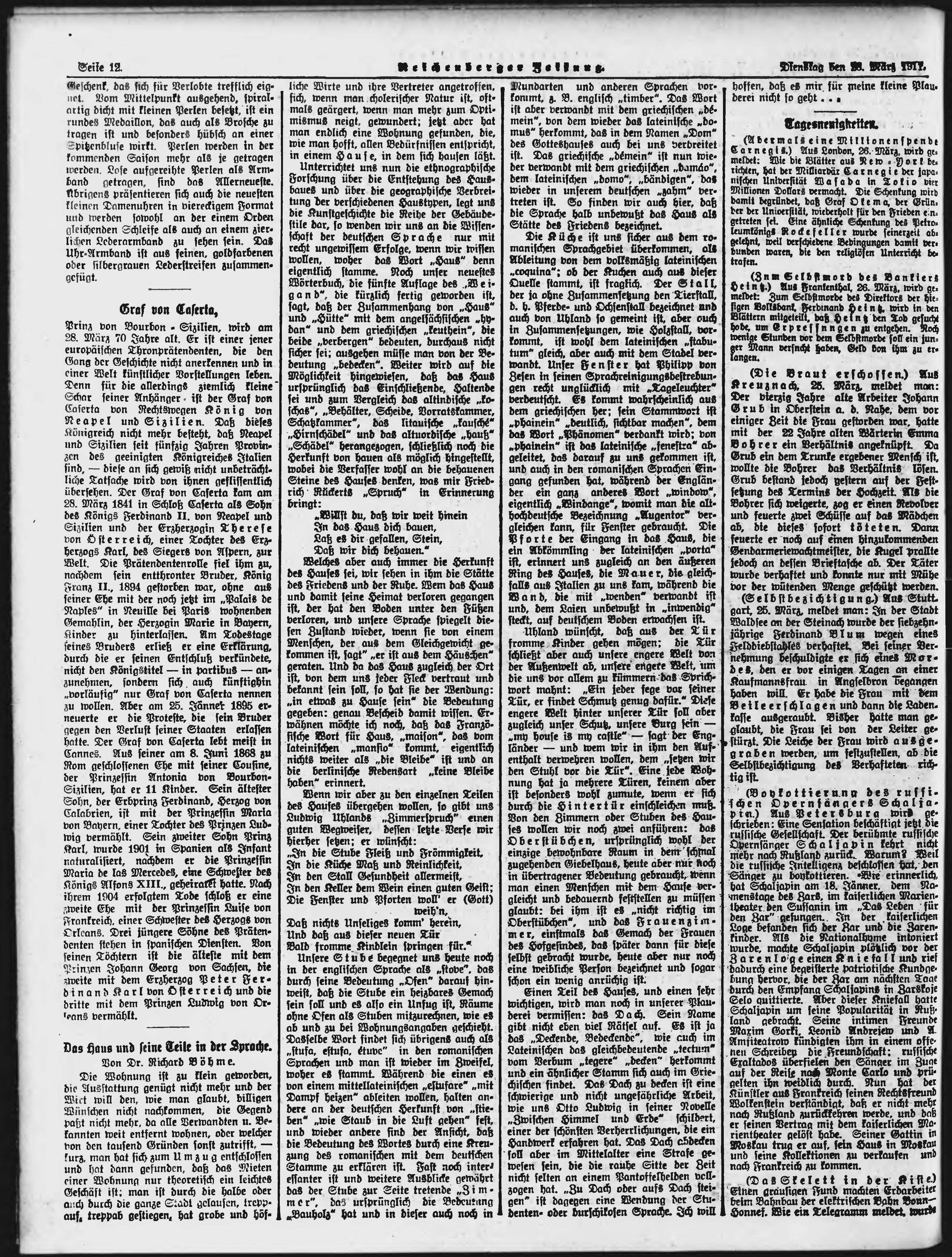 * Datum vydání výtisku: 28.3.1911 Číslo výtisku: 74 Poznámky k výtisku: ranní vydání;