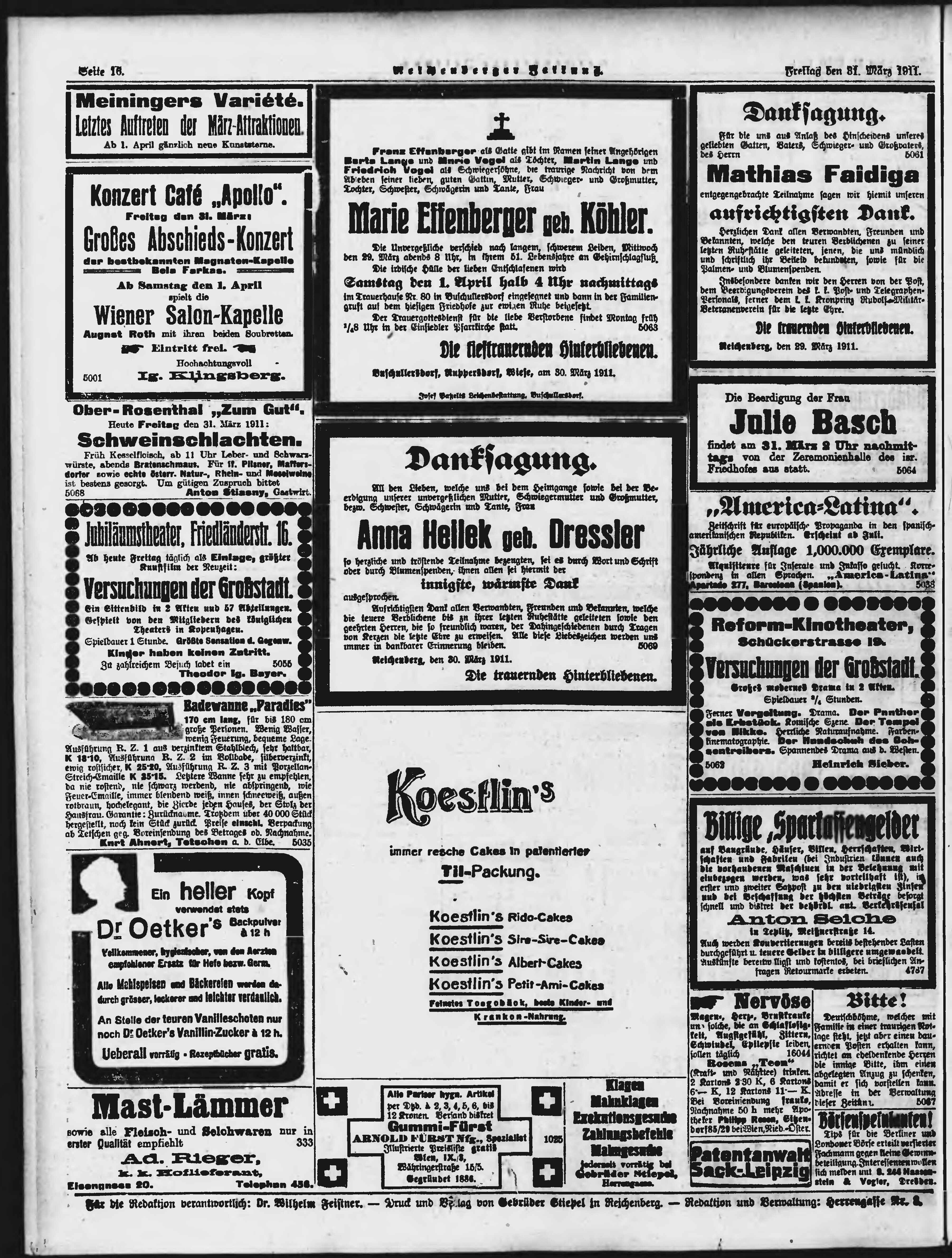 * Datum vydání výtisku: 31.3.1911 Číslo výtisku: 77 Poznámky k výtisku: ranní vydání;