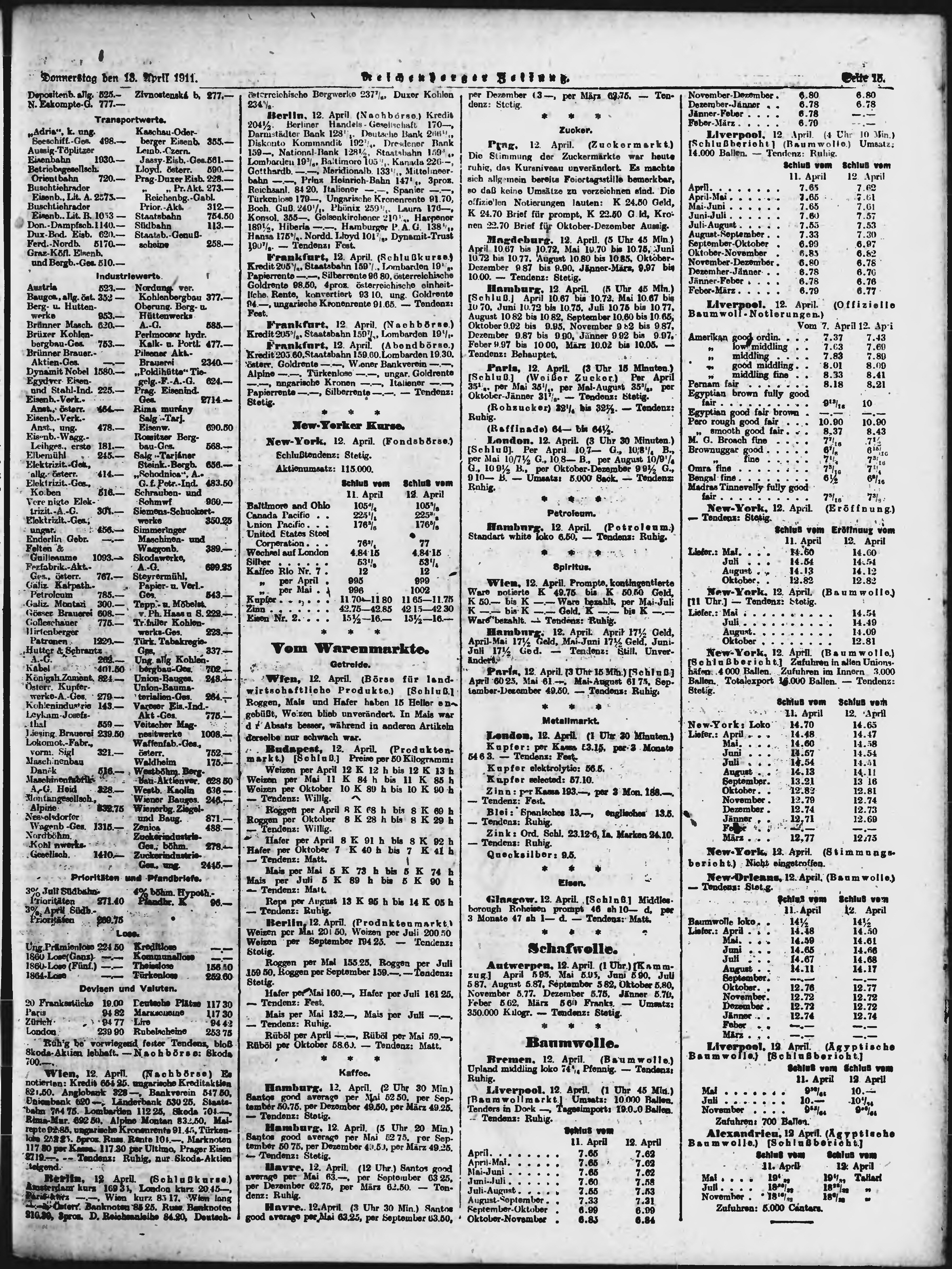* Datum vydání výtisku: 13.4.1911 Číslo výtisku: 88 Poznámky k výtisku: ranní vydání;
