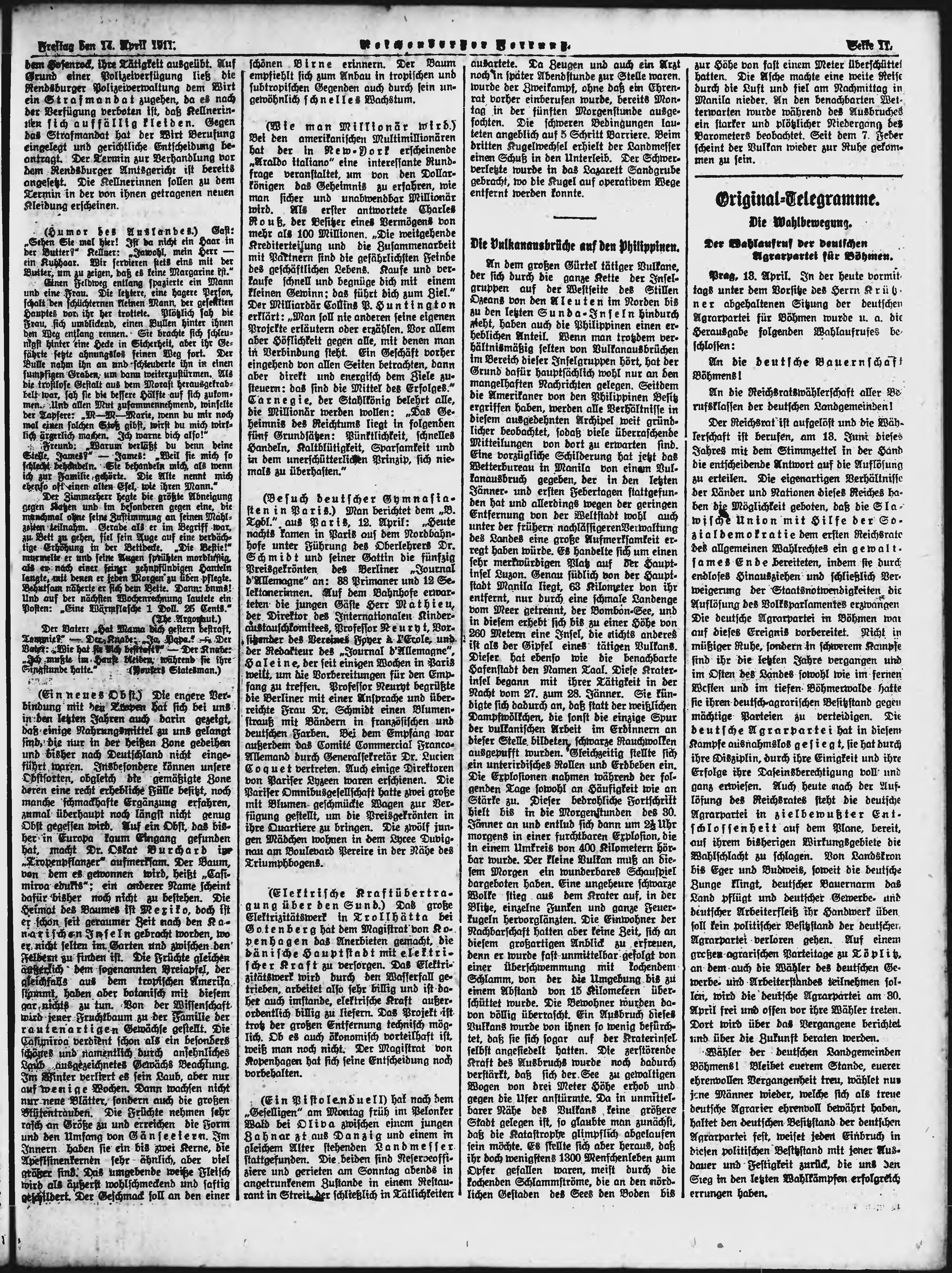 * Datum vydání výtisku: 14.4.1911 Číslo výtisku: 89 Poznámky k výtisku: ranní vydání;