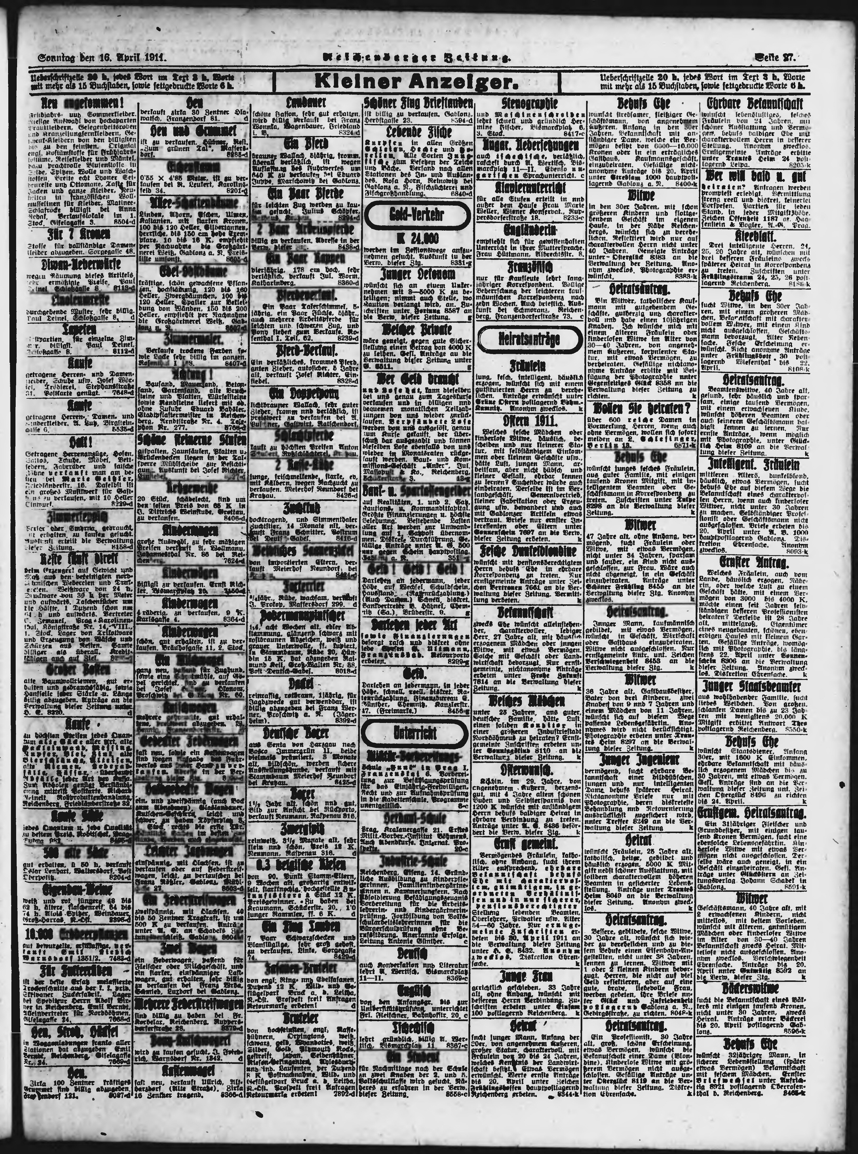 * Datum vydání výtisku: 16.4.1911 Číslo výtisku: 91 Poznámky k výtisku: ranní vydání;