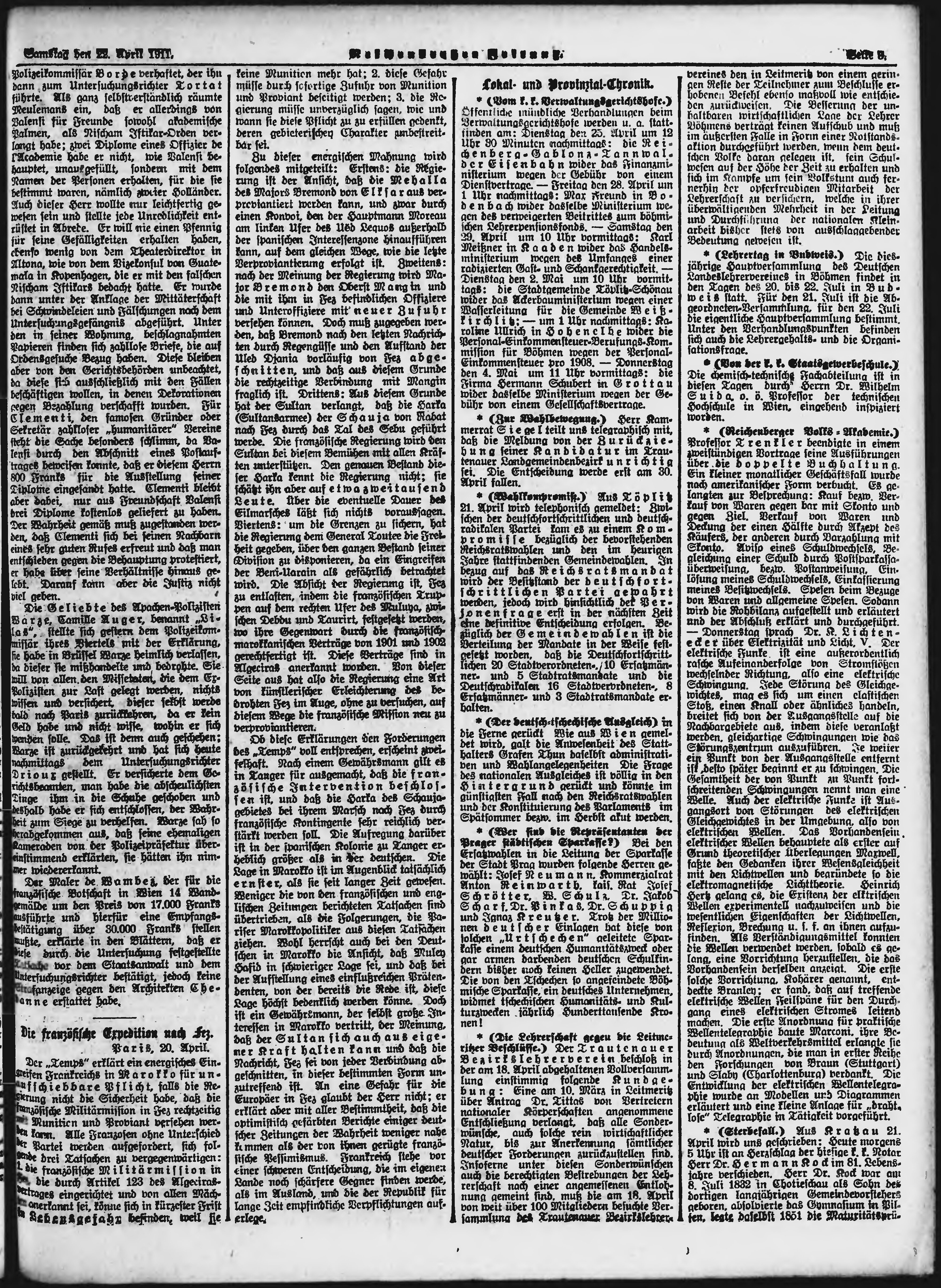 * Datum vydání výtisku: 22.4.1911 Číslo výtisku: 95 Poznámky k výtisku: ranní vydání;