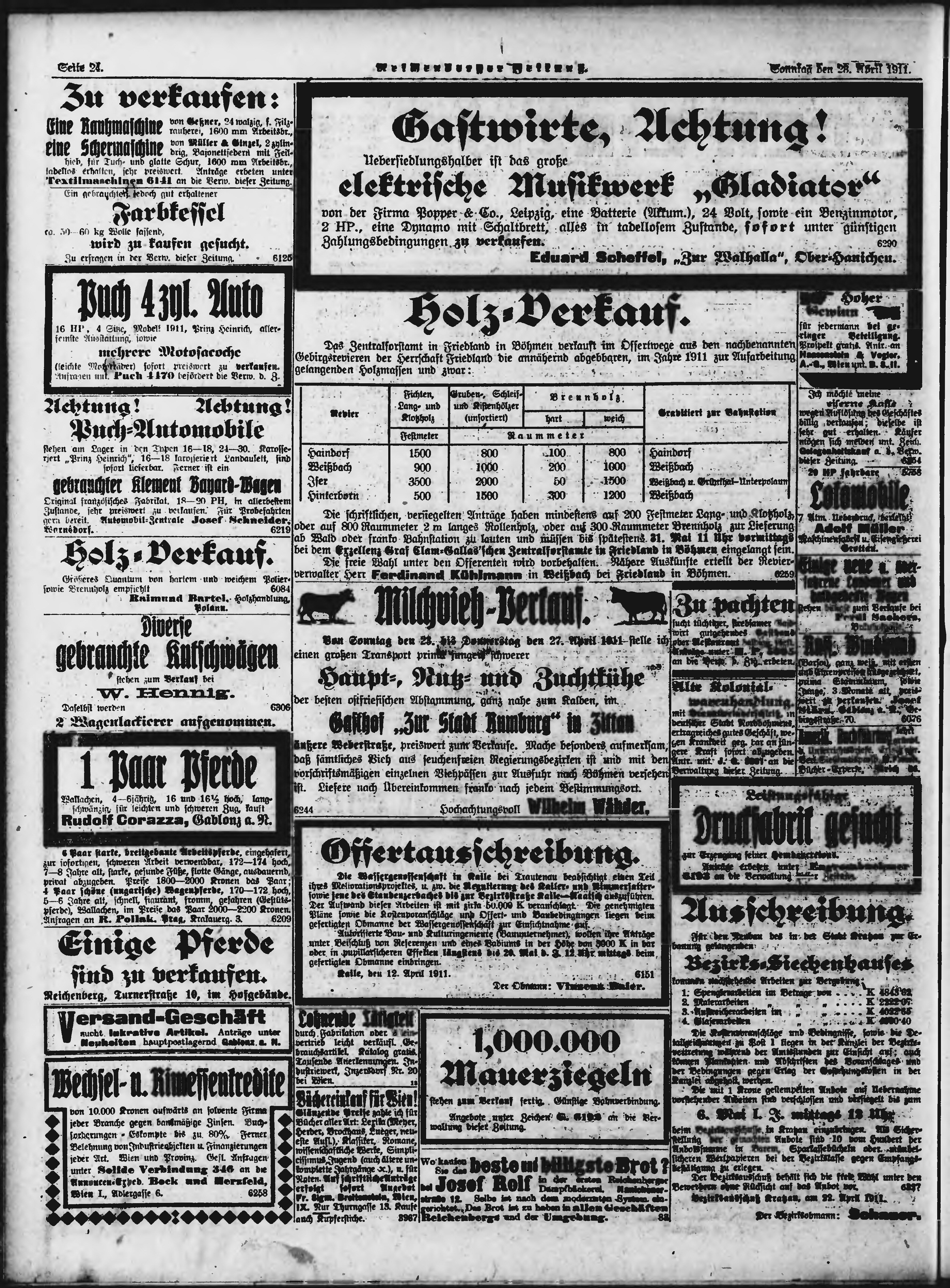 * Datum vydání výtisku: 23.4.1911 Číslo výtisku: 96 Poznámky k výtisku: ranní vydání;