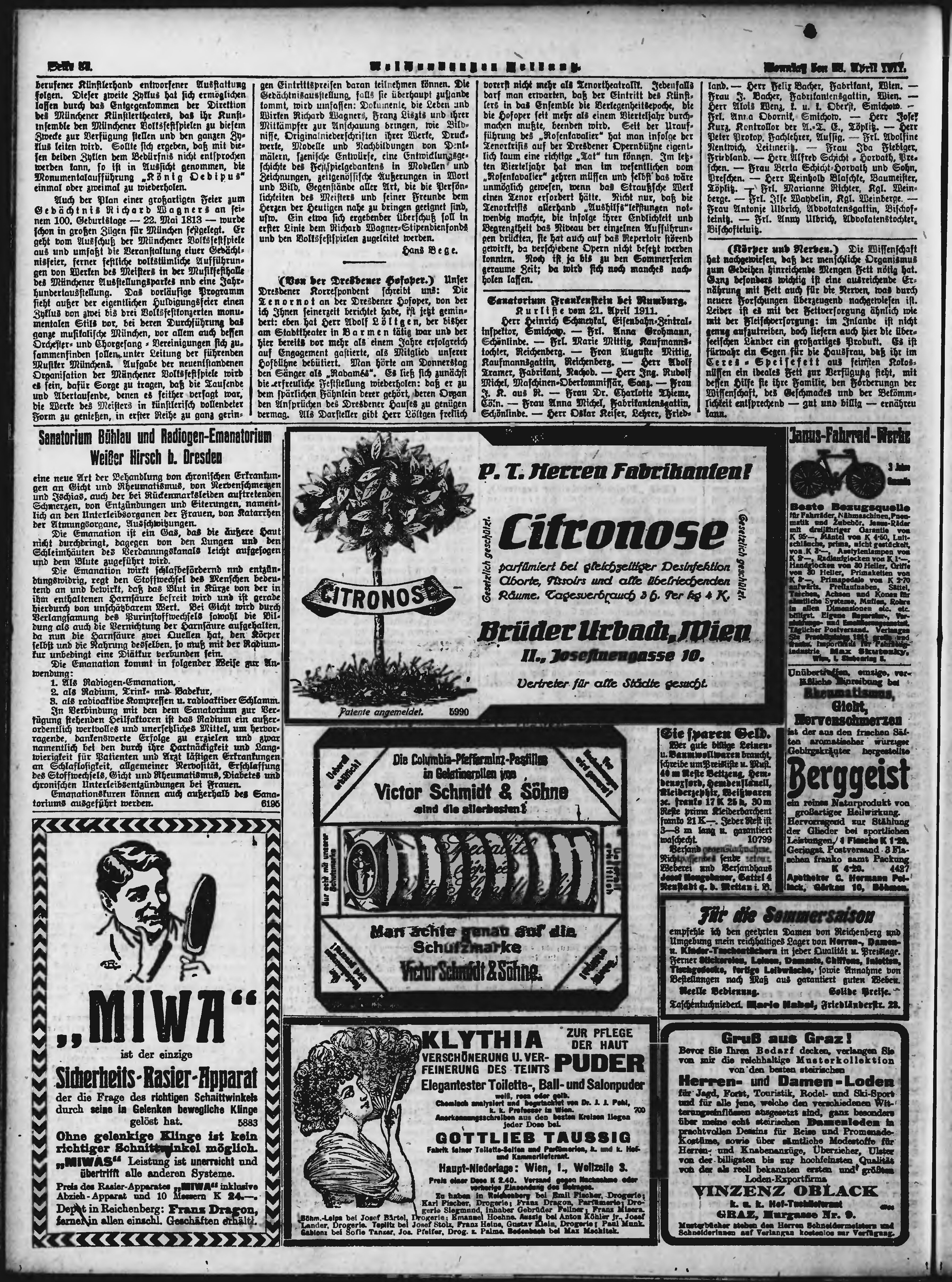 * Datum vydání výtisku: 23.4.1911 Číslo výtisku: 96 Poznámky k výtisku: ranní vydání;
