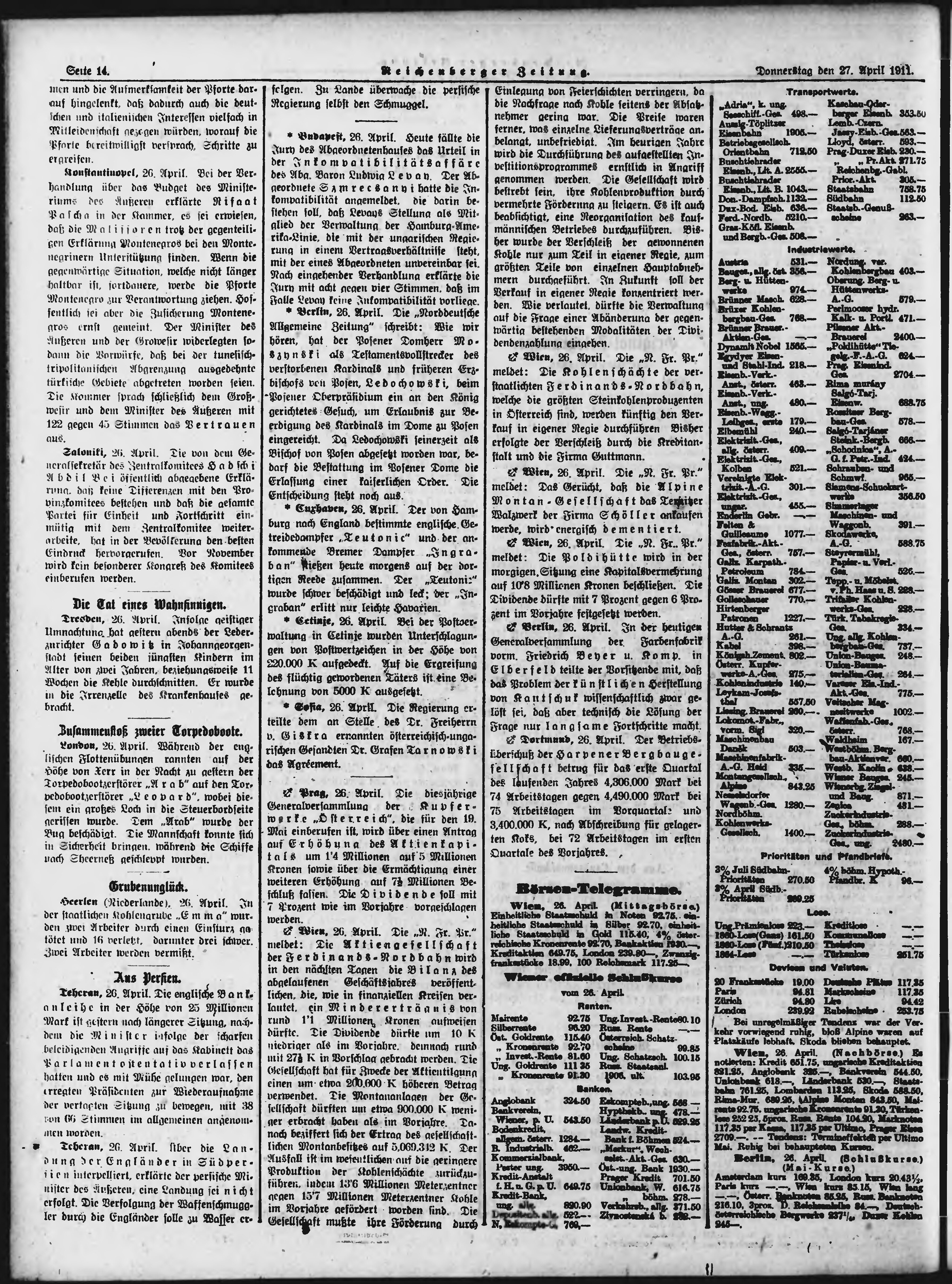 * Datum vydání výtisku: 27.4.1911 Číslo výtisku: 99 Poznámky k výtisku: ranní vydání;