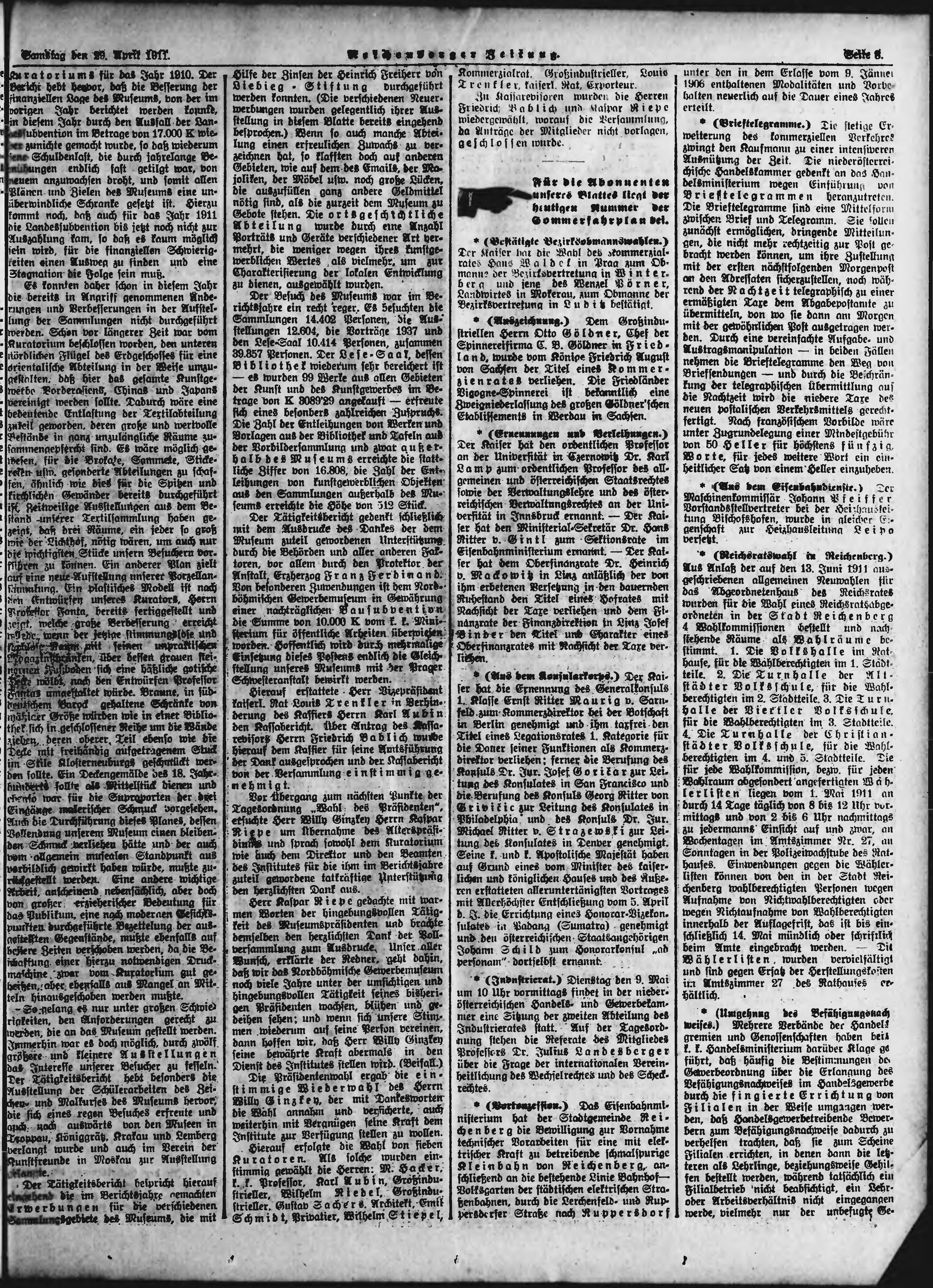 * Datum vydání výtisku: 29.4.1911 Číslo výtisku: 101 Poznámky k výtisku: ranní vydání;