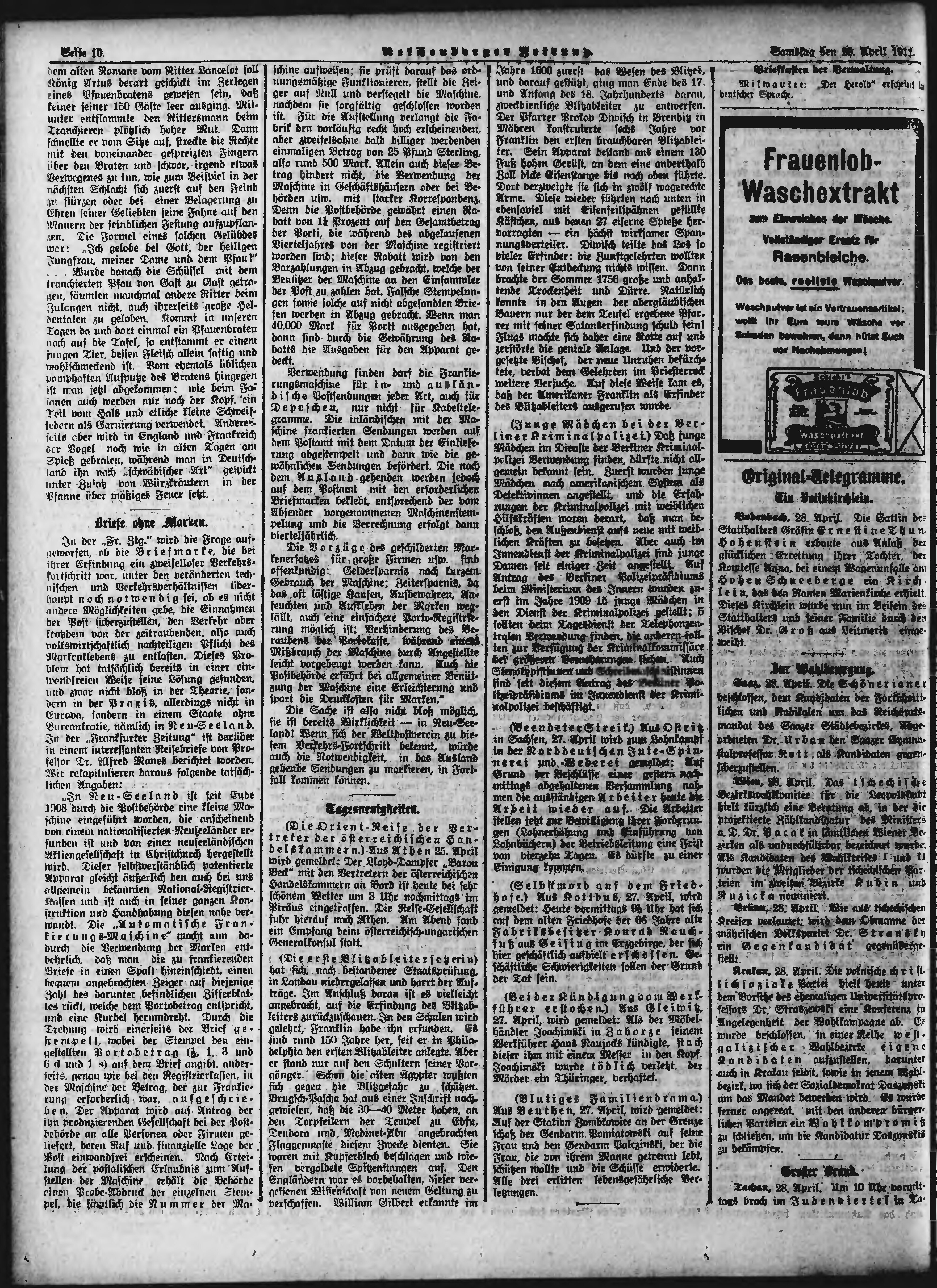 * Datum vydání výtisku: 29.4.1911 Číslo výtisku: 101 Poznámky k výtisku: ranní vydání;