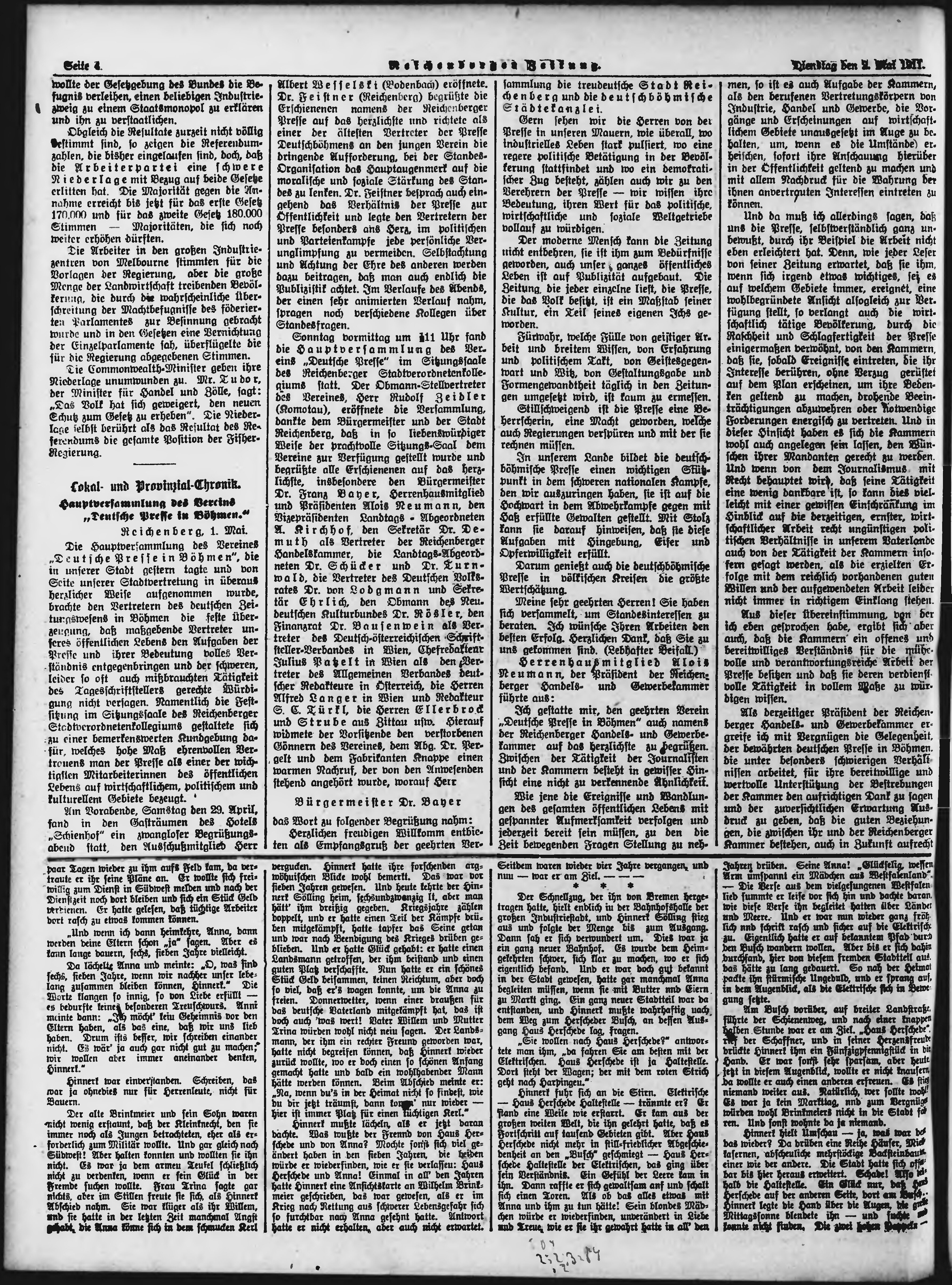 * Datum vydání výtisku: 2.5.1911 Číslo výtisku: 103 Poznámky k výtisku: ranní vydání;