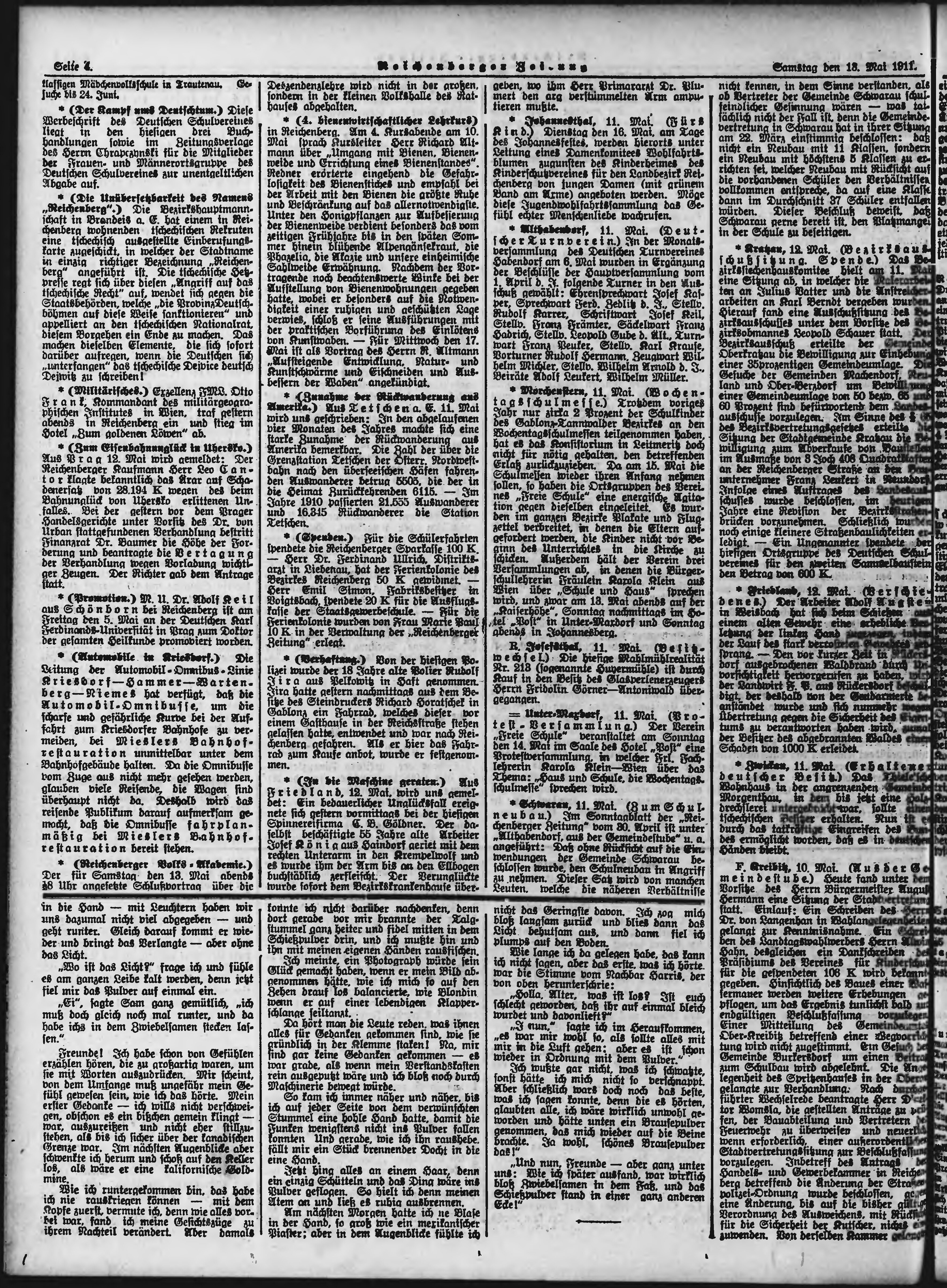 * Datum vydání výtisku: 13.5.1911 Číslo výtisku: 113 Poznámky k výtisku: ranní vydání;