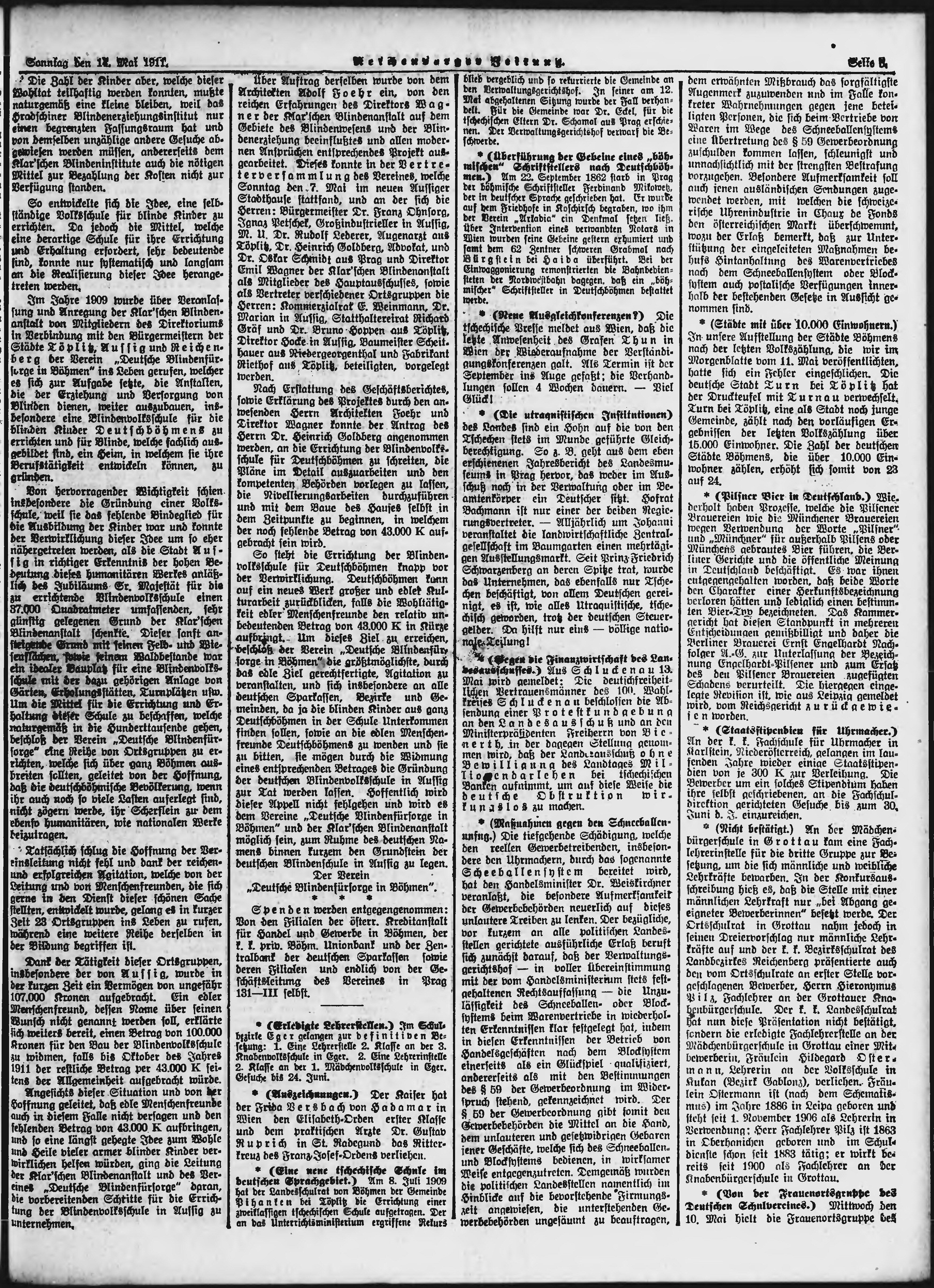 * Datum vydání výtisku: 14.5.1911 Číslo výtisku: 114 Poznámky k výtisku: ranní vydání;