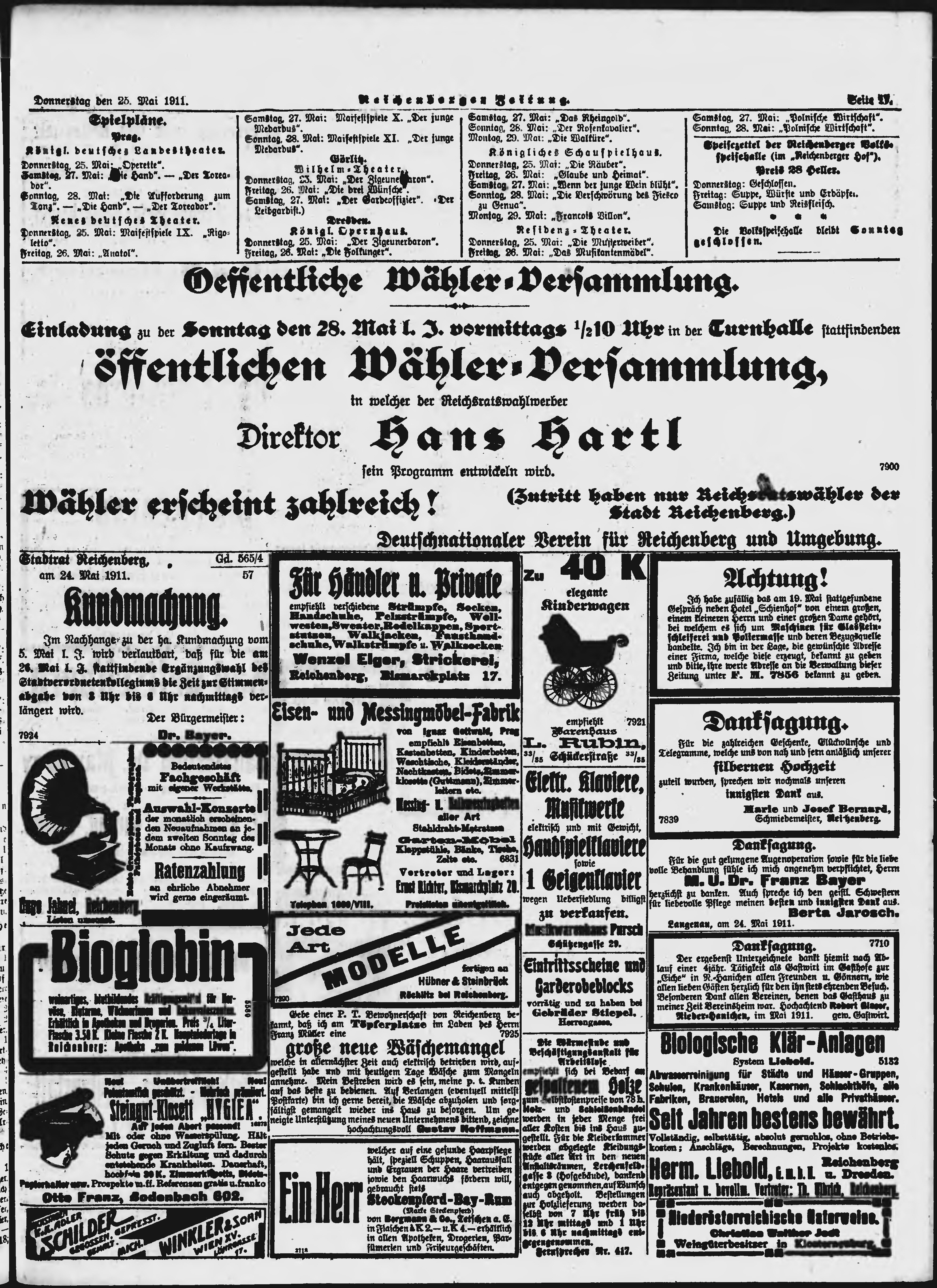 * Datum vydání výtisku: 25.5.1911 Číslo výtisku: 123 Poznámky k výtisku: ranní vydání;