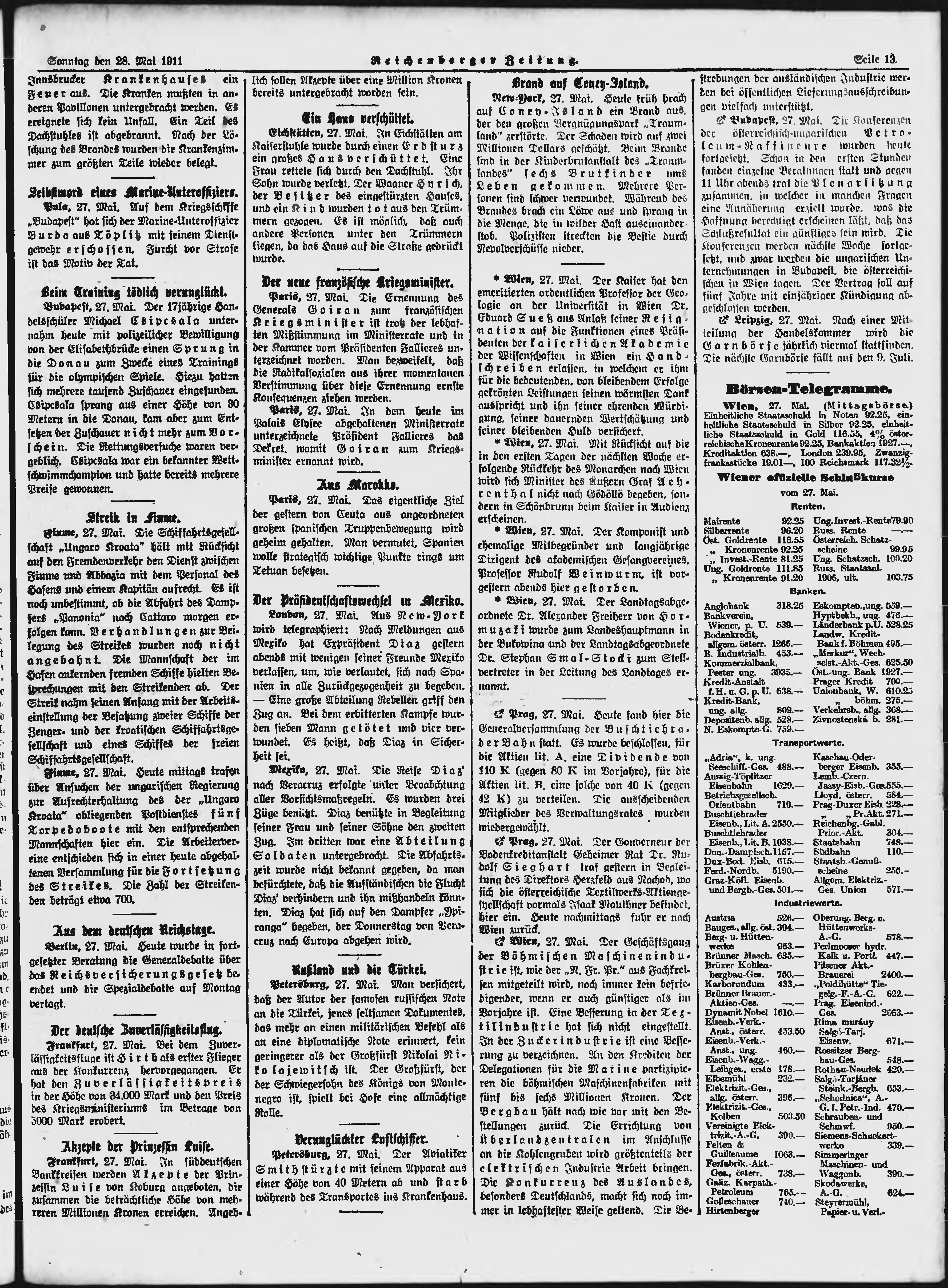 * Datum vydání výtisku: 28.5.1911 Číslo výtisku: 126 Poznámky k výtisku: ranní vydání;