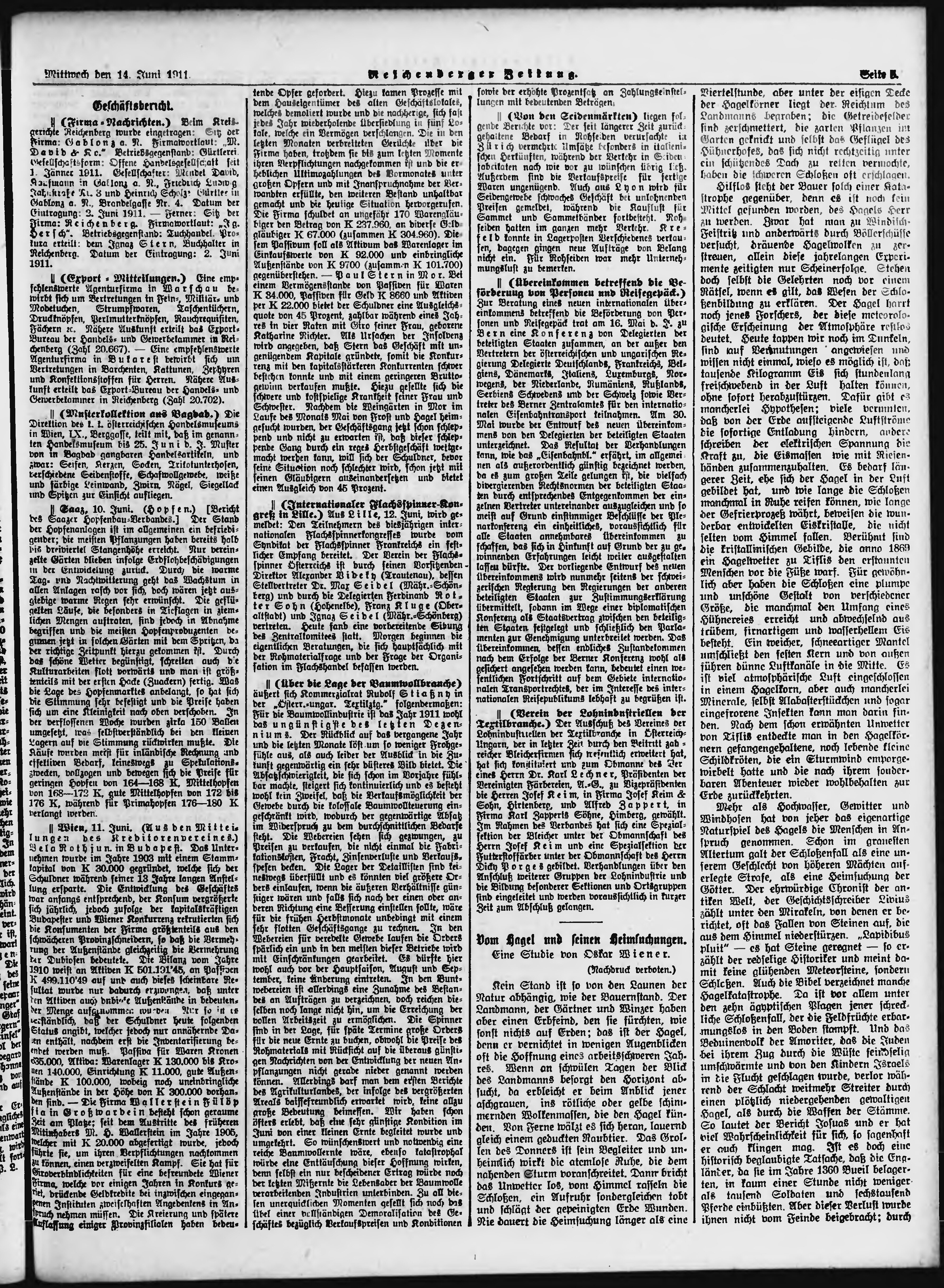 * Datum vydání výtisku: 14.6.1911 Číslo výtisku: 139 Poznámky k výtisku: ranní vydání;
