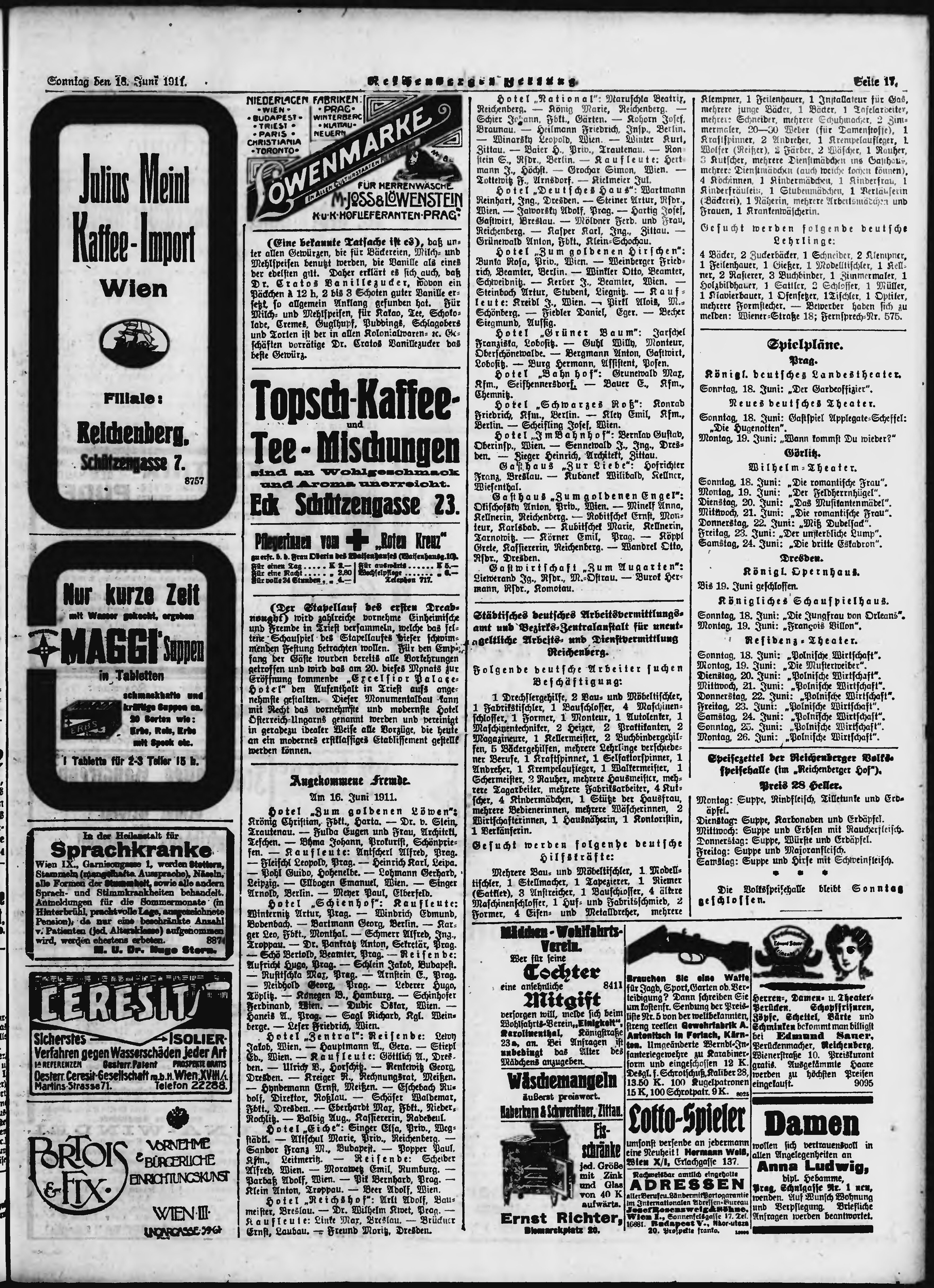 * Datum vydání výtisku: 18.6.1911 Číslo výtisku: 143 Poznámky k výtisku: ranní vydání;