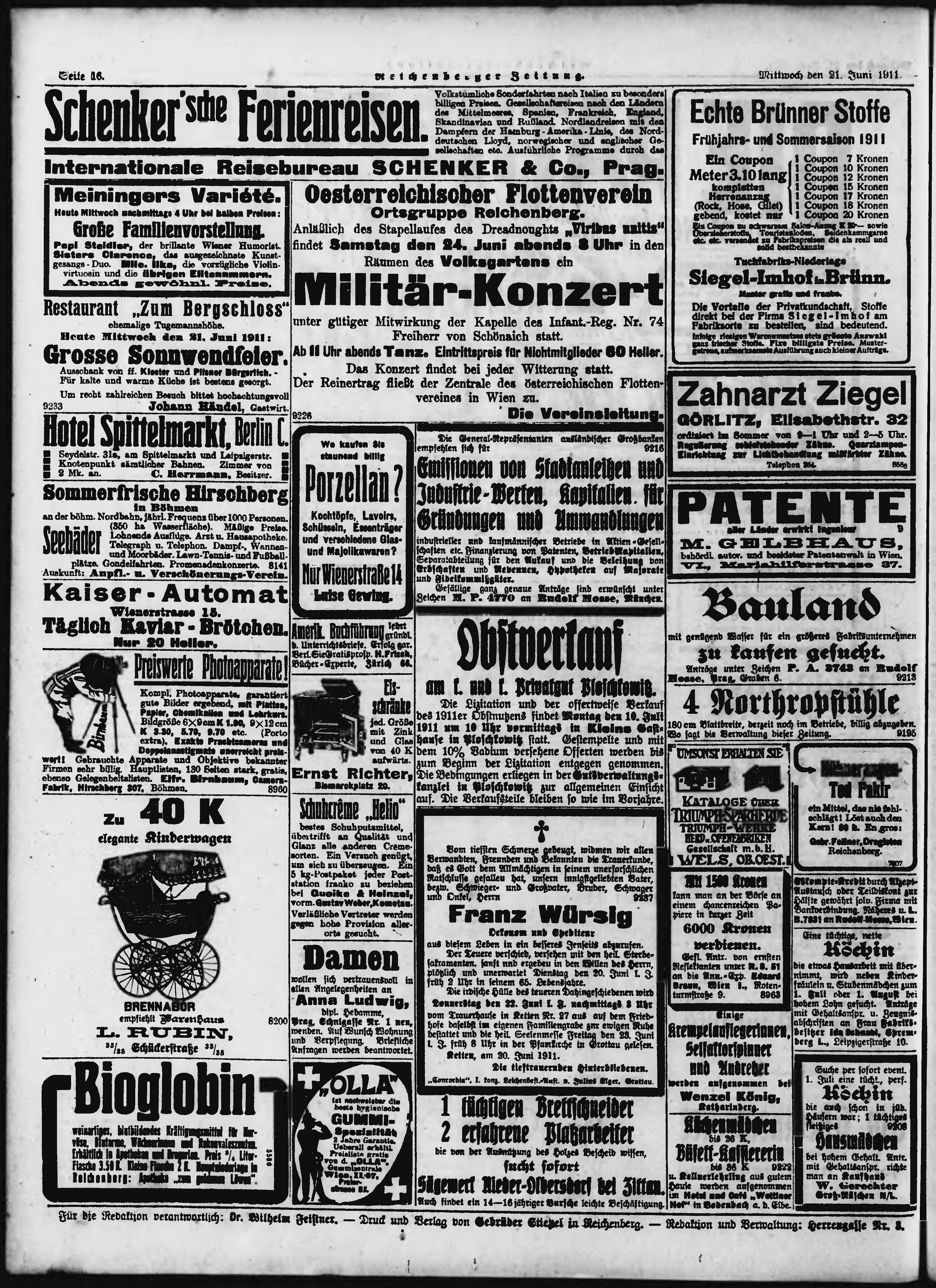 * Datum vydání výtisku: 21.6.1911 Číslo výtisku: 145 Poznámky k výtisku: ranní vydání;