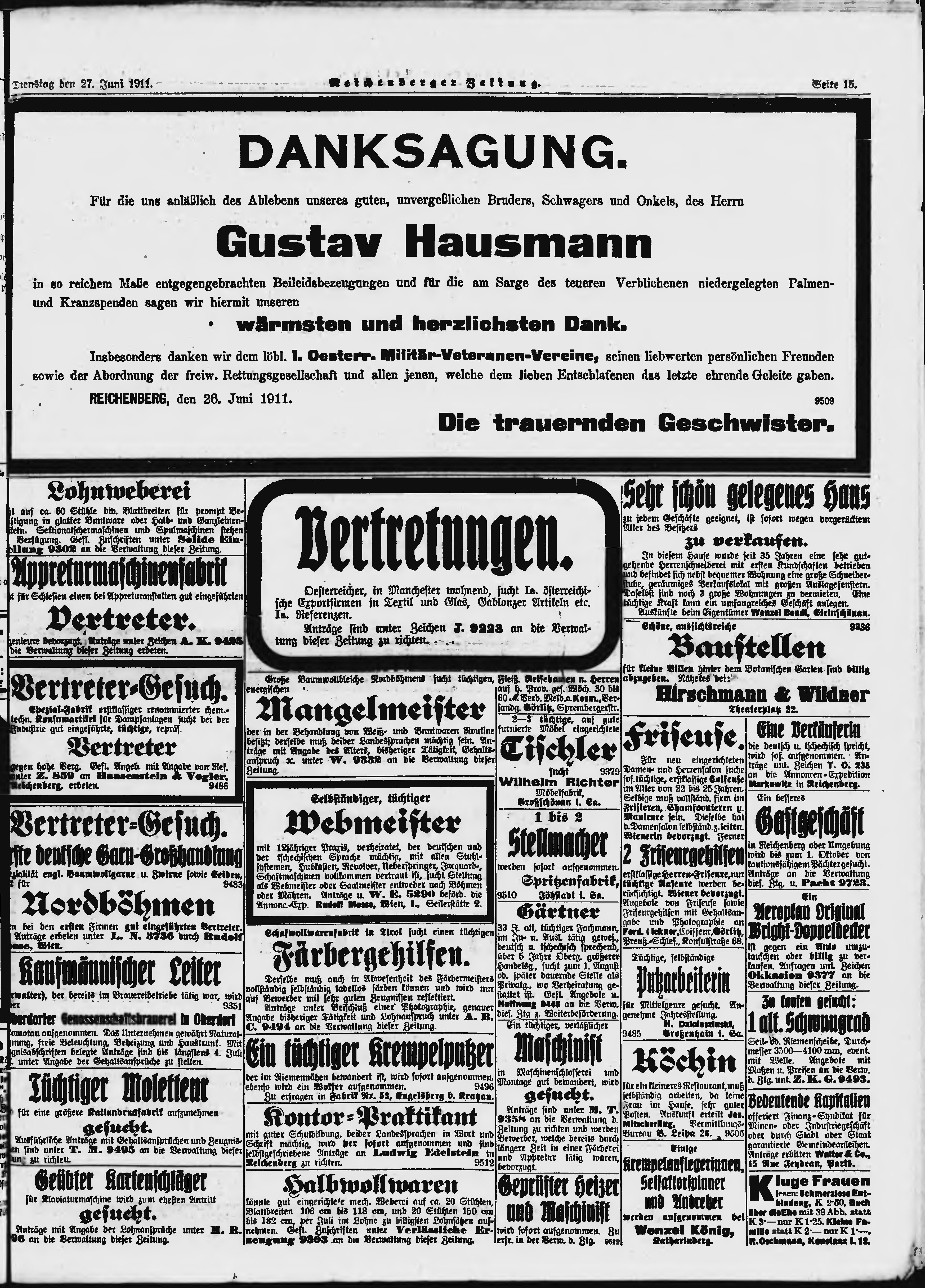 * Datum vydání výtisku: 27.6.1911 Číslo výtisku: 150 Poznámky k výtisku: ranní vydání;