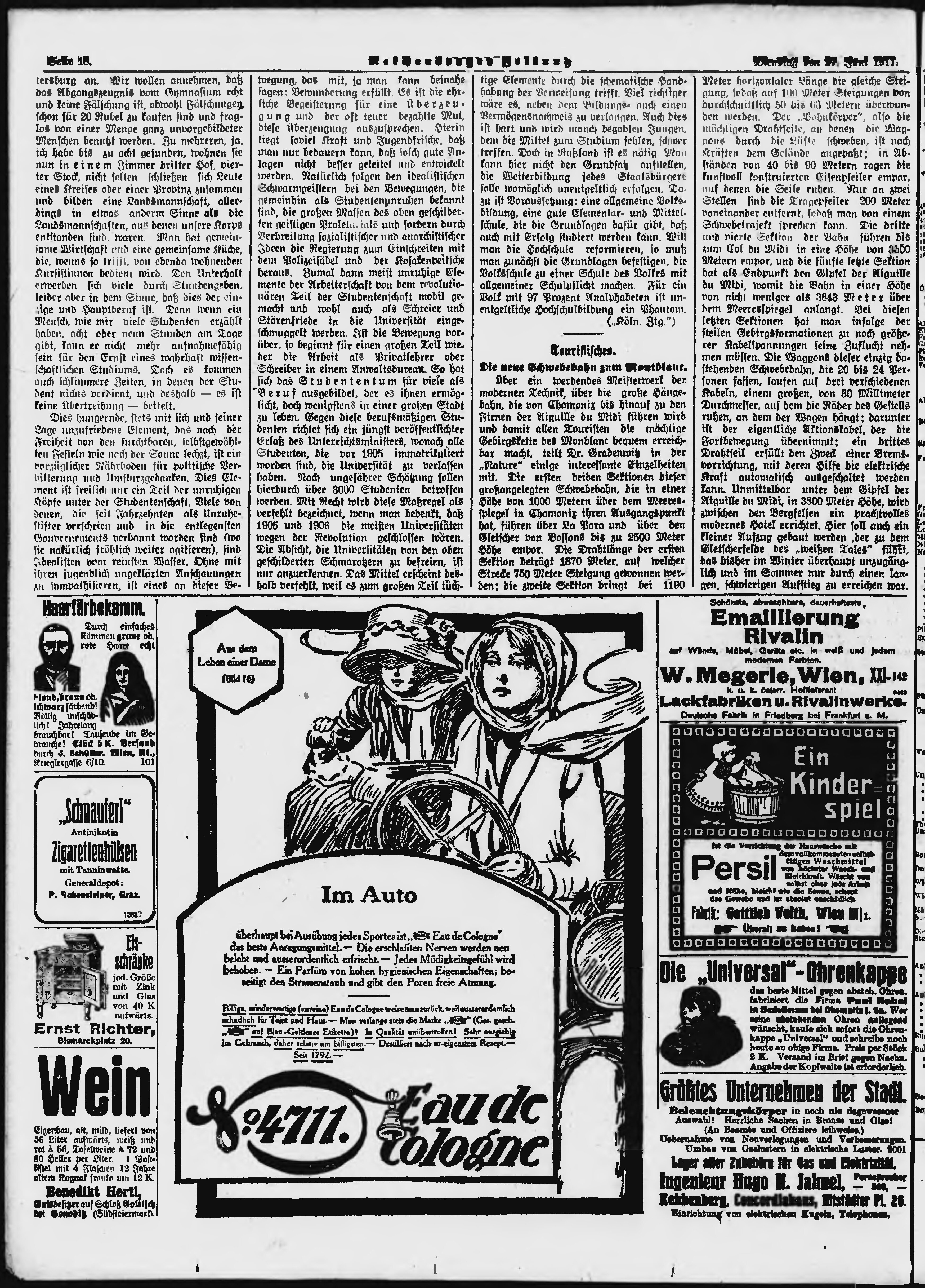 * Datum vydání výtisku: 27.6.1911 Číslo výtisku: 150 Poznámky k výtisku: ranní vydání;