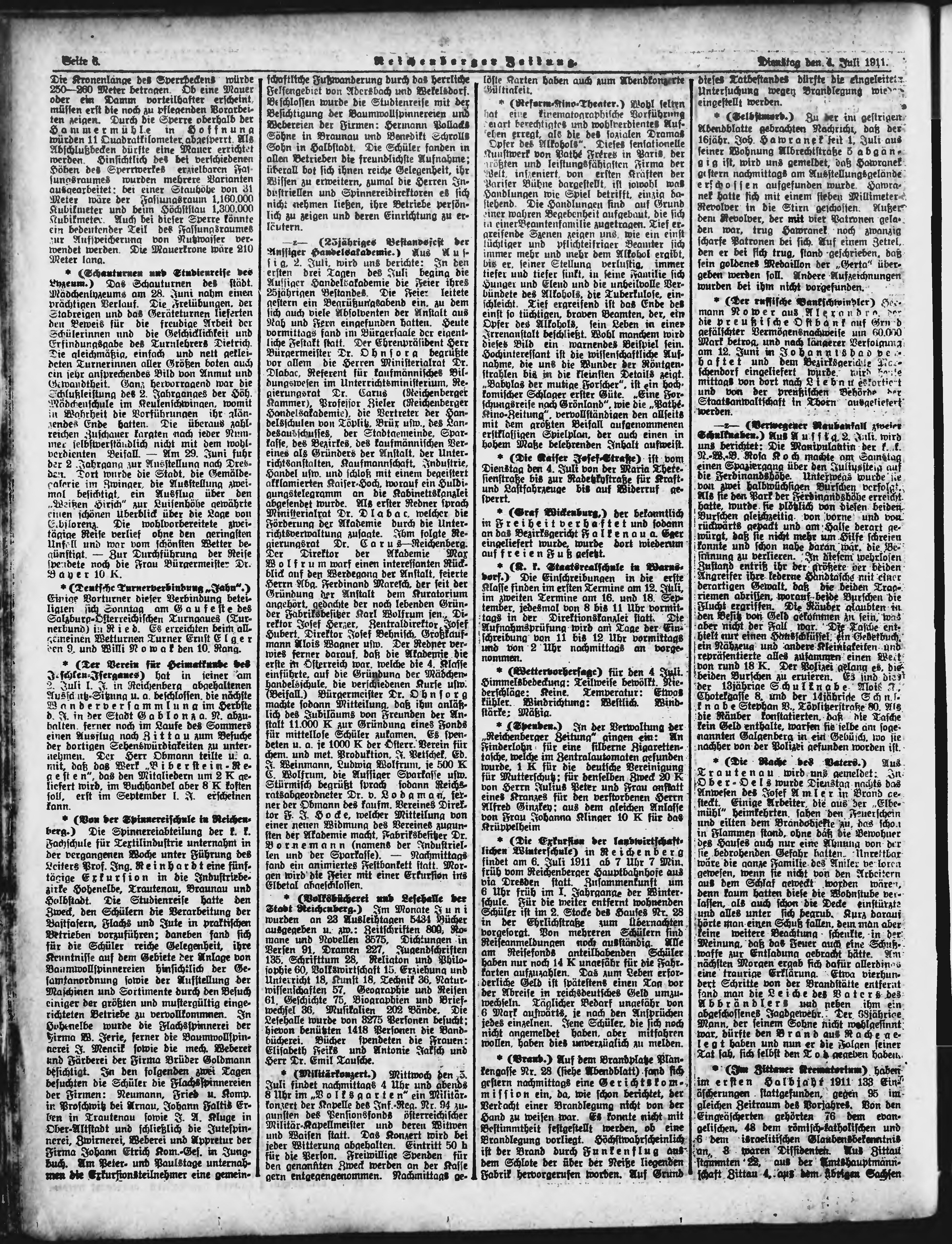 * Datum vydání výtisku: 4.7.1911 Číslo výtisku: 156 Poznámky k výtisku: ranní vydání;