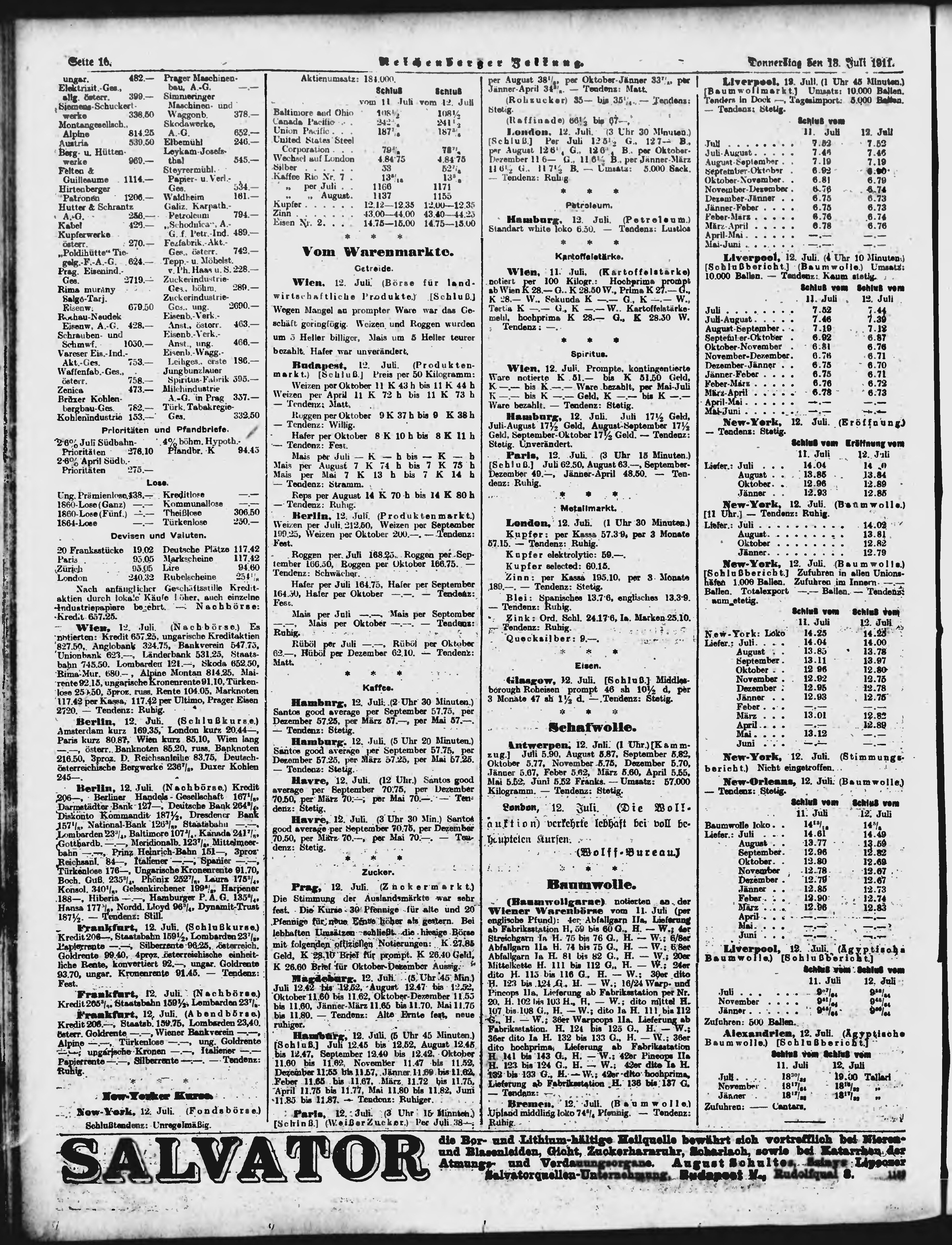 * Datum vydání výtisku: 13.7.1911 Číslo výtisku: 164 Poznámky k výtisku: ranní vydání;