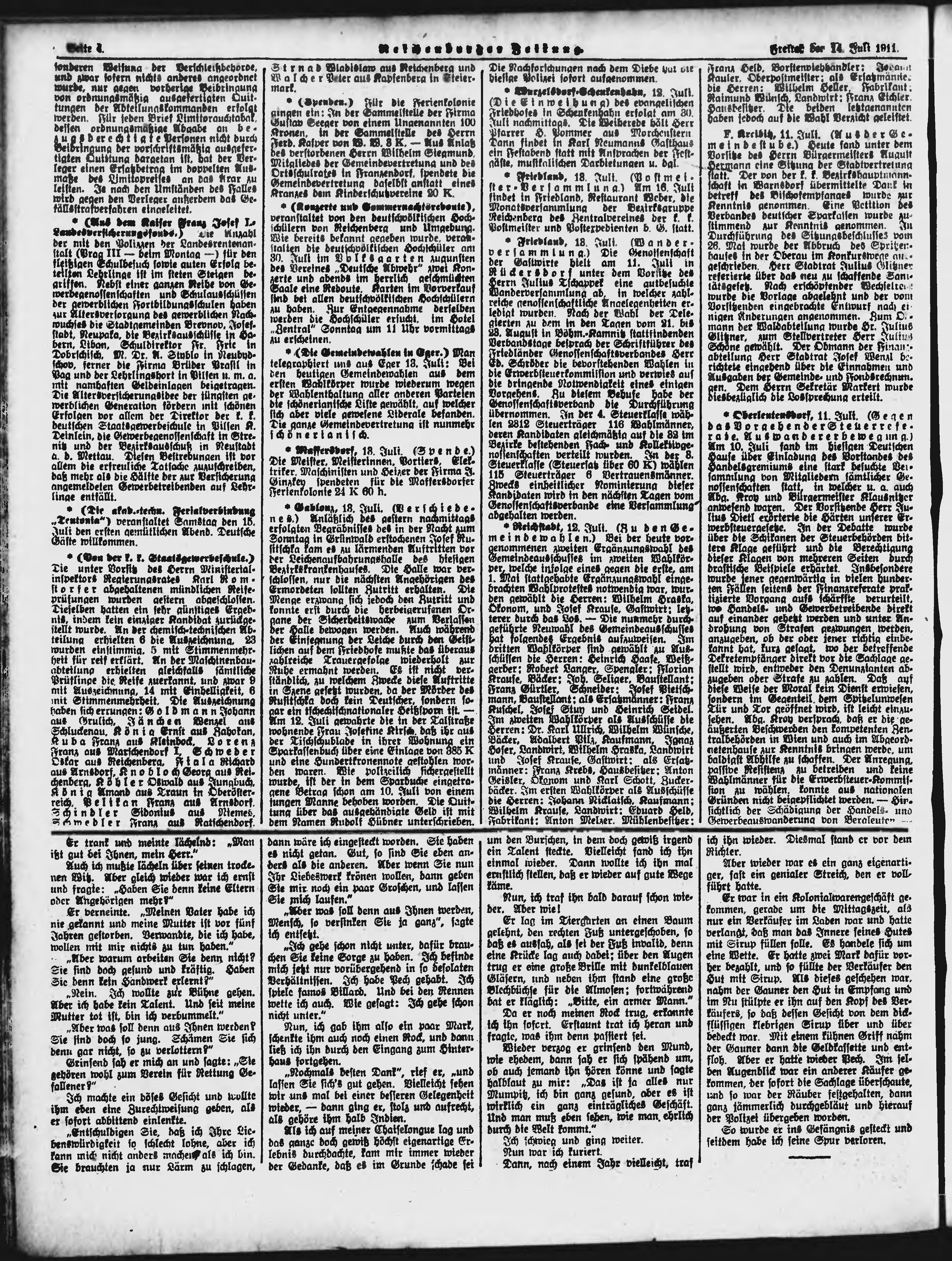 * Datum vydání výtisku: 14.7.1911 Číslo výtisku: 165 Poznámky k výtisku: ranní vydání;