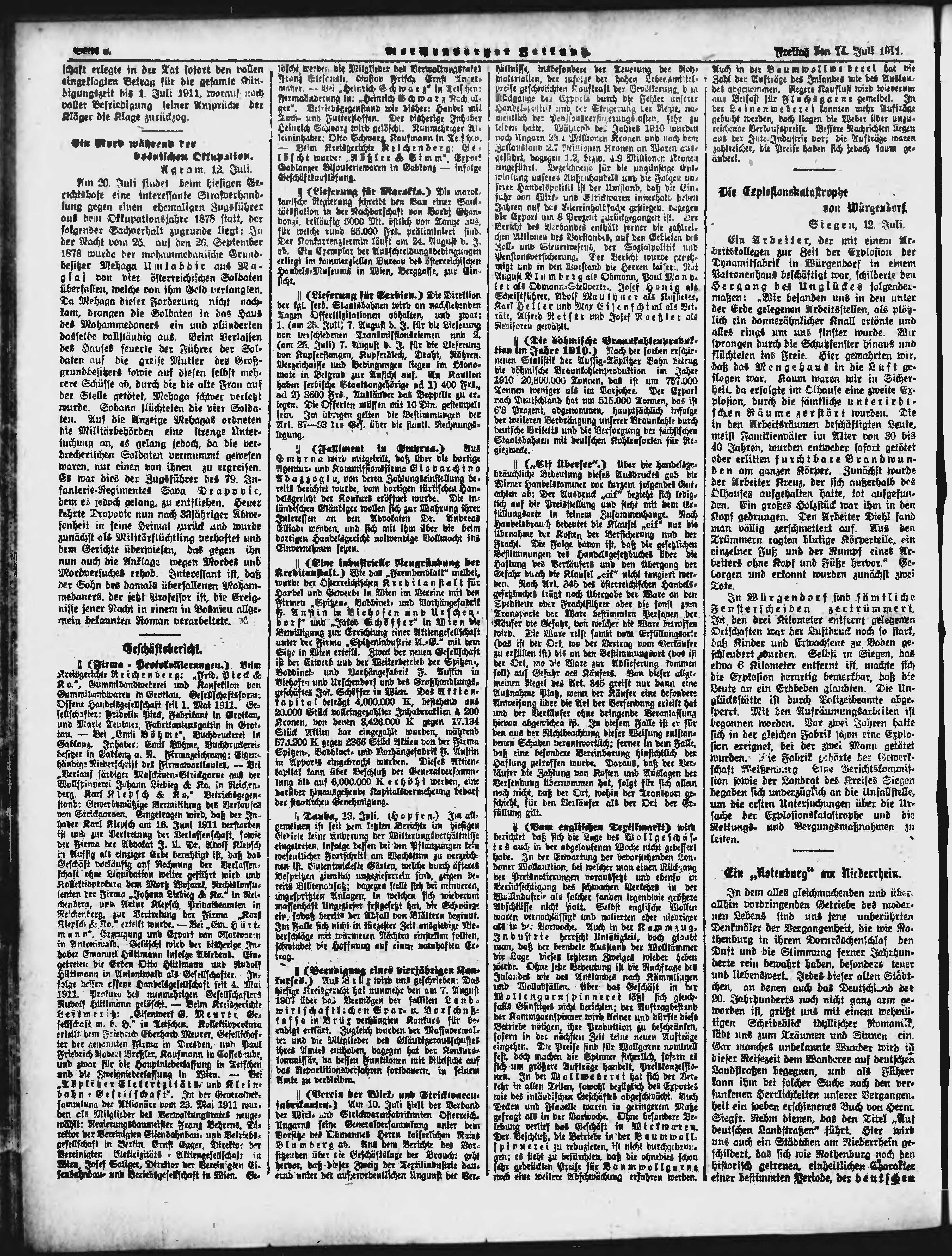 * Datum vydání výtisku: 14.7.1911 Číslo výtisku: 165 Poznámky k výtisku: ranní vydání;