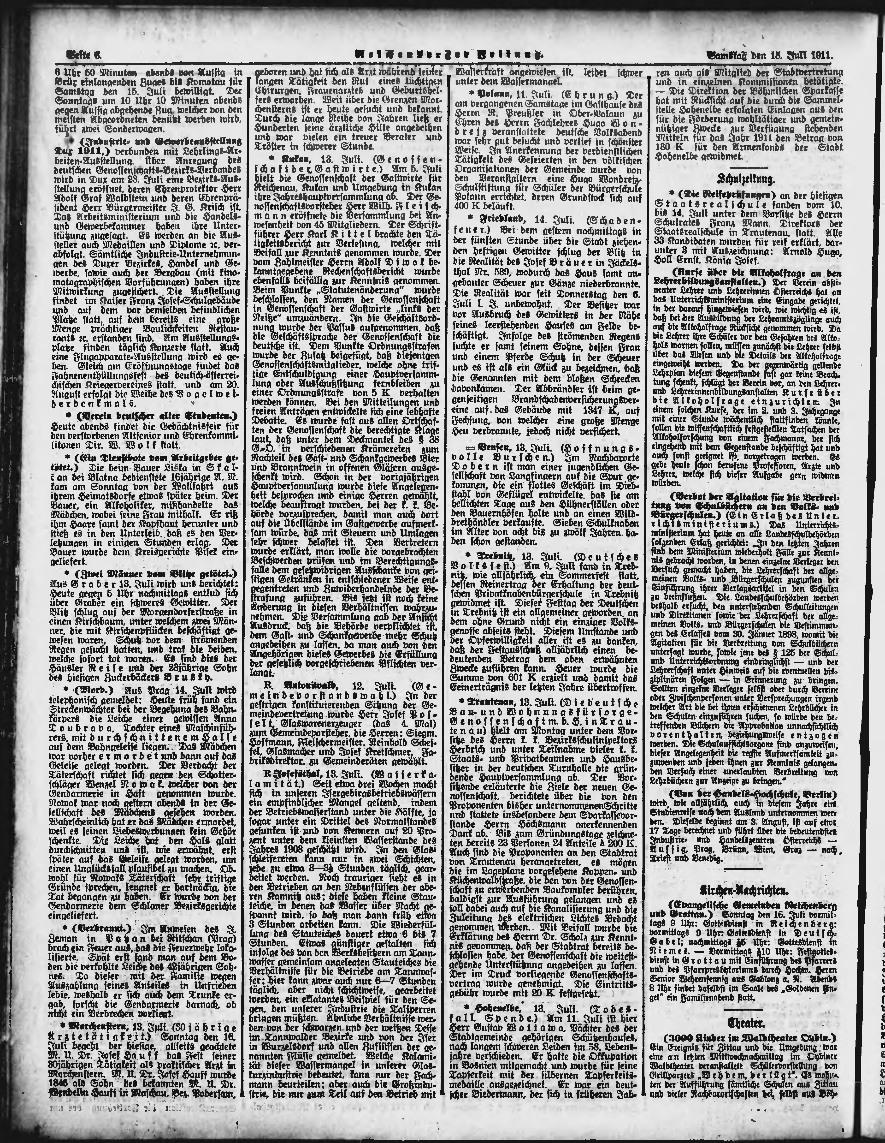 * Datum vydání výtisku: 15.7.1911 Číslo výtisku: 166 Poznámky k výtisku: ranní vydání;