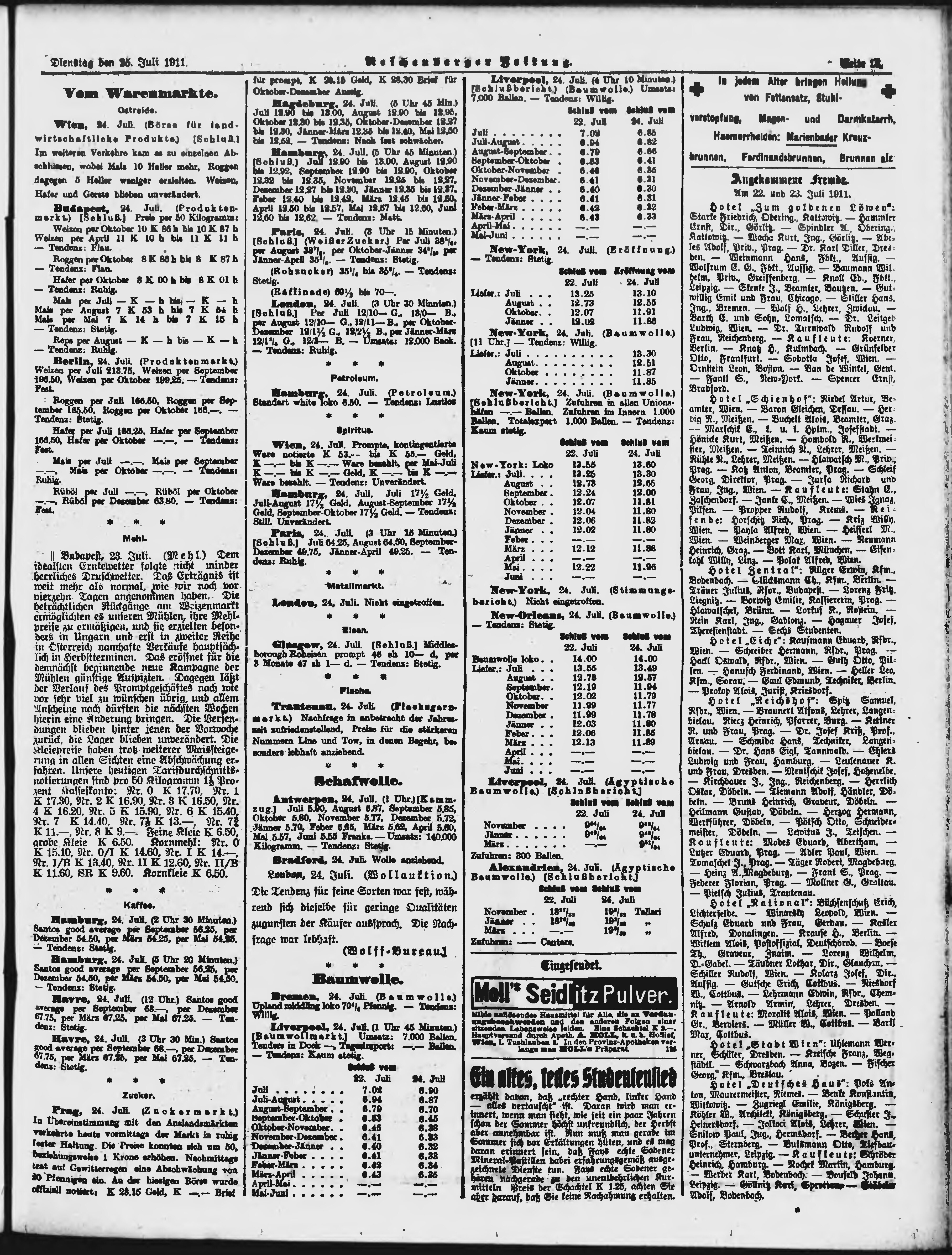 * Datum vydání výtisku: 25.7.1911 Číslo výtisku: 174 Poznámky k výtisku: ranní vydání; nekonzistence číslování stran;
