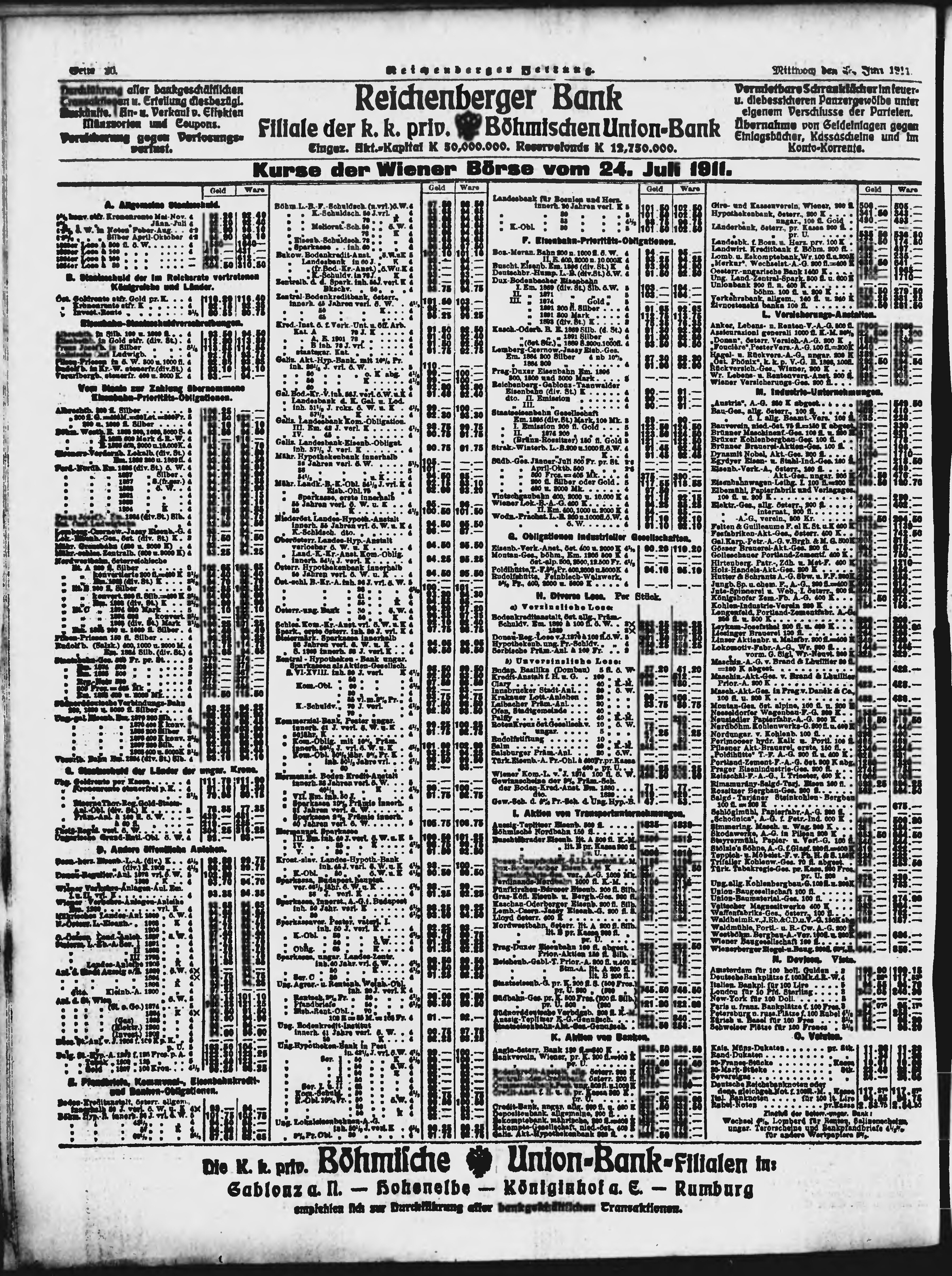 * Datum vydání výtisku: 26.7.1911 Číslo výtisku: 175 Poznámky k výtisku: ranní vydání; nekonzistence číslování stran;
