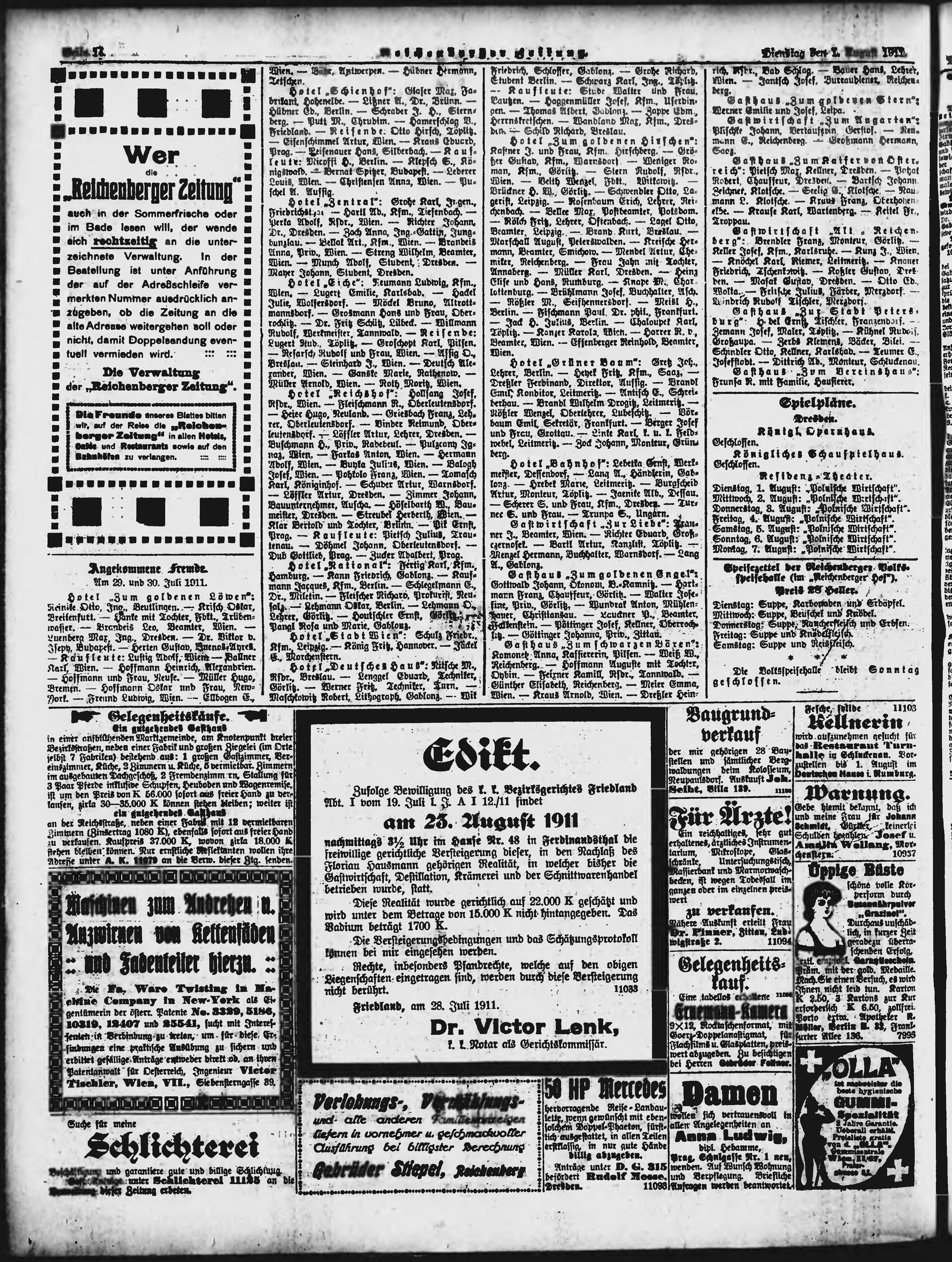 * Datum vydání výtisku: 1.8.1911 Číslo výtisku: 180 Poznámky k výtisku: ranní vydání;