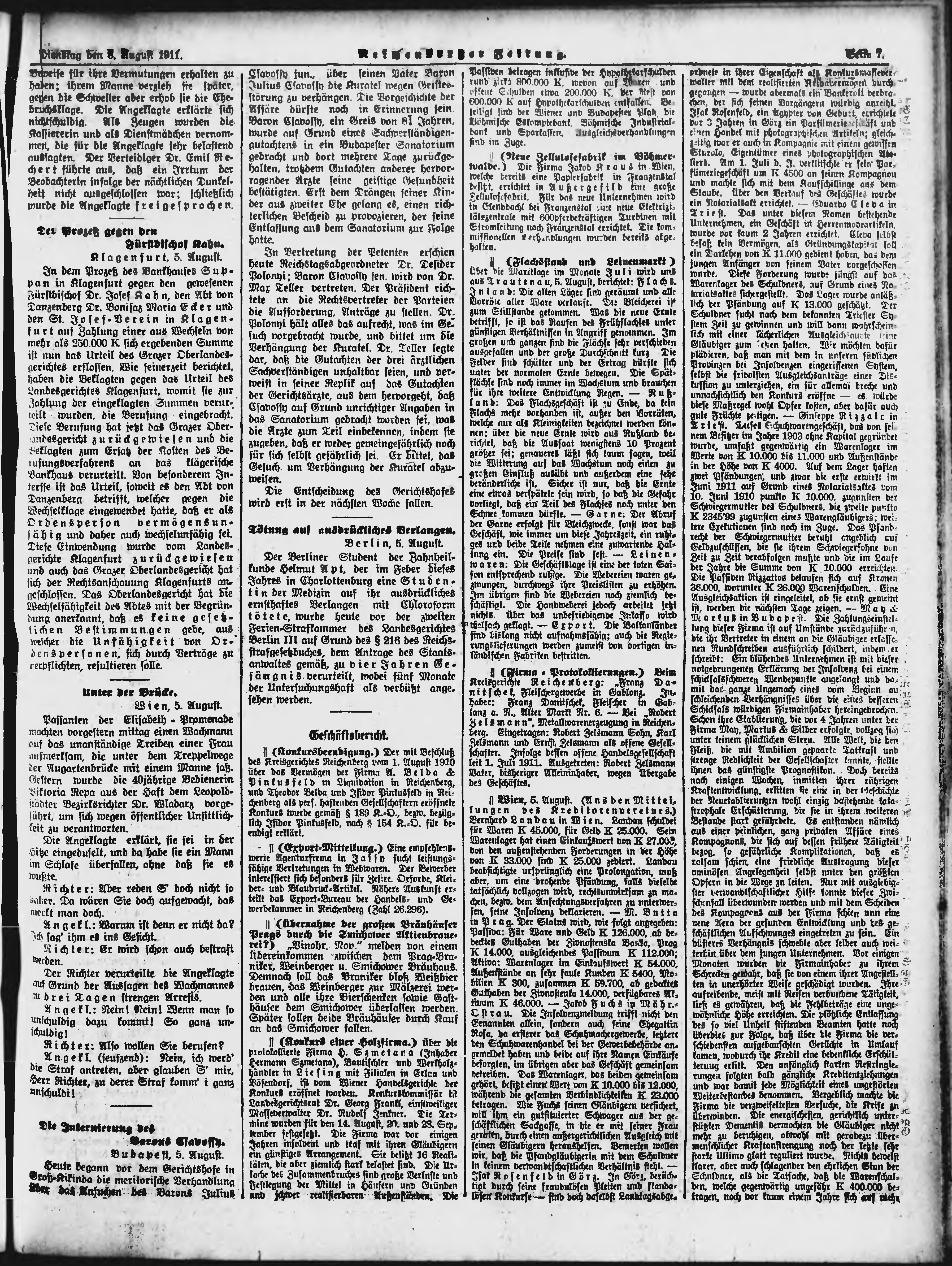 * Datum vydání výtisku: 8.8.1911 Číslo výtisku: 186 Poznámky k výtisku: ranní vydání;