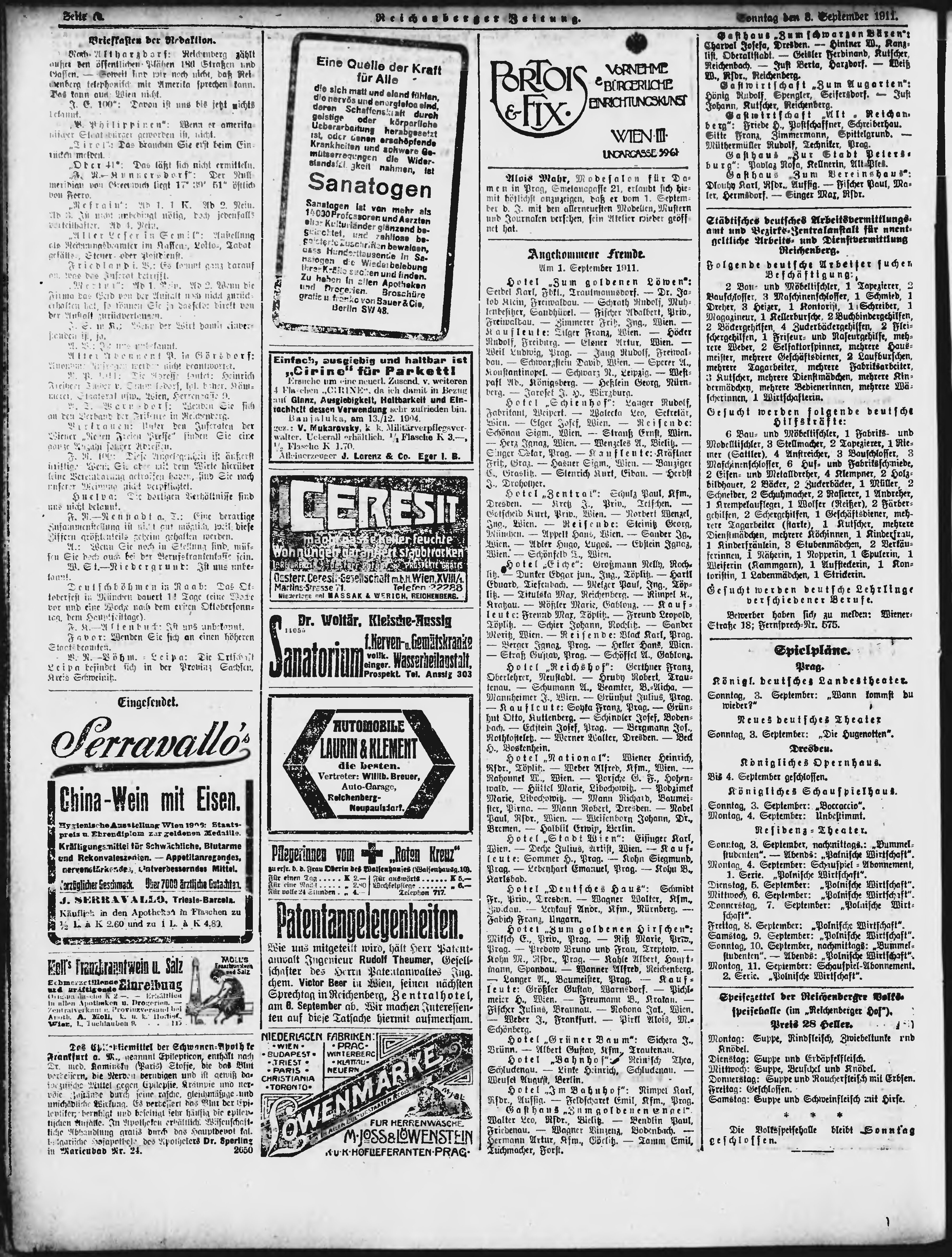 * Datum vydání výtisku: 3.9.1911 Číslo výtisku: 209 Poznámky k výtisku: ranní vydání;