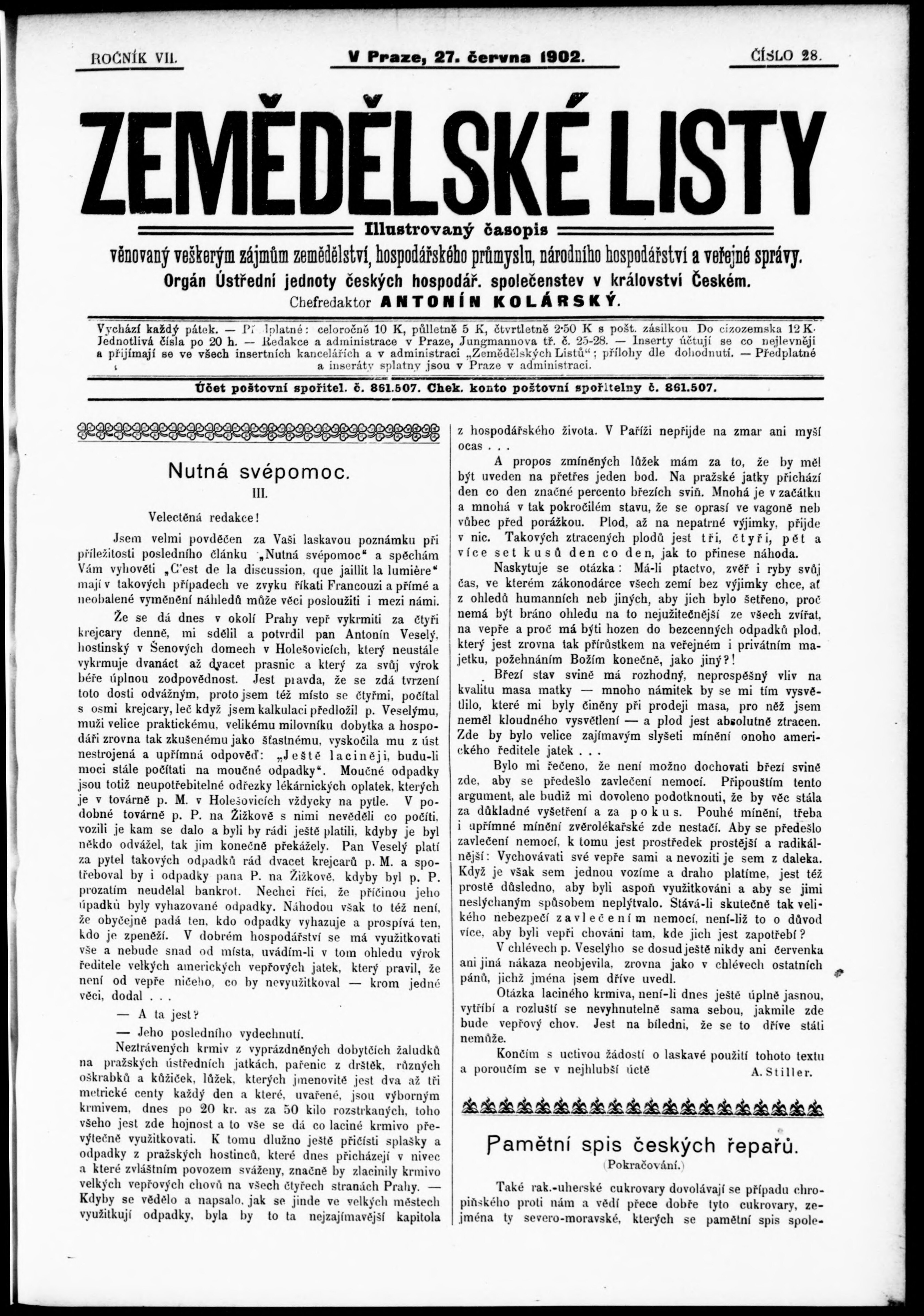 * Datum vydání výtisku: 27.6.1902 Číslo výtisku: 28