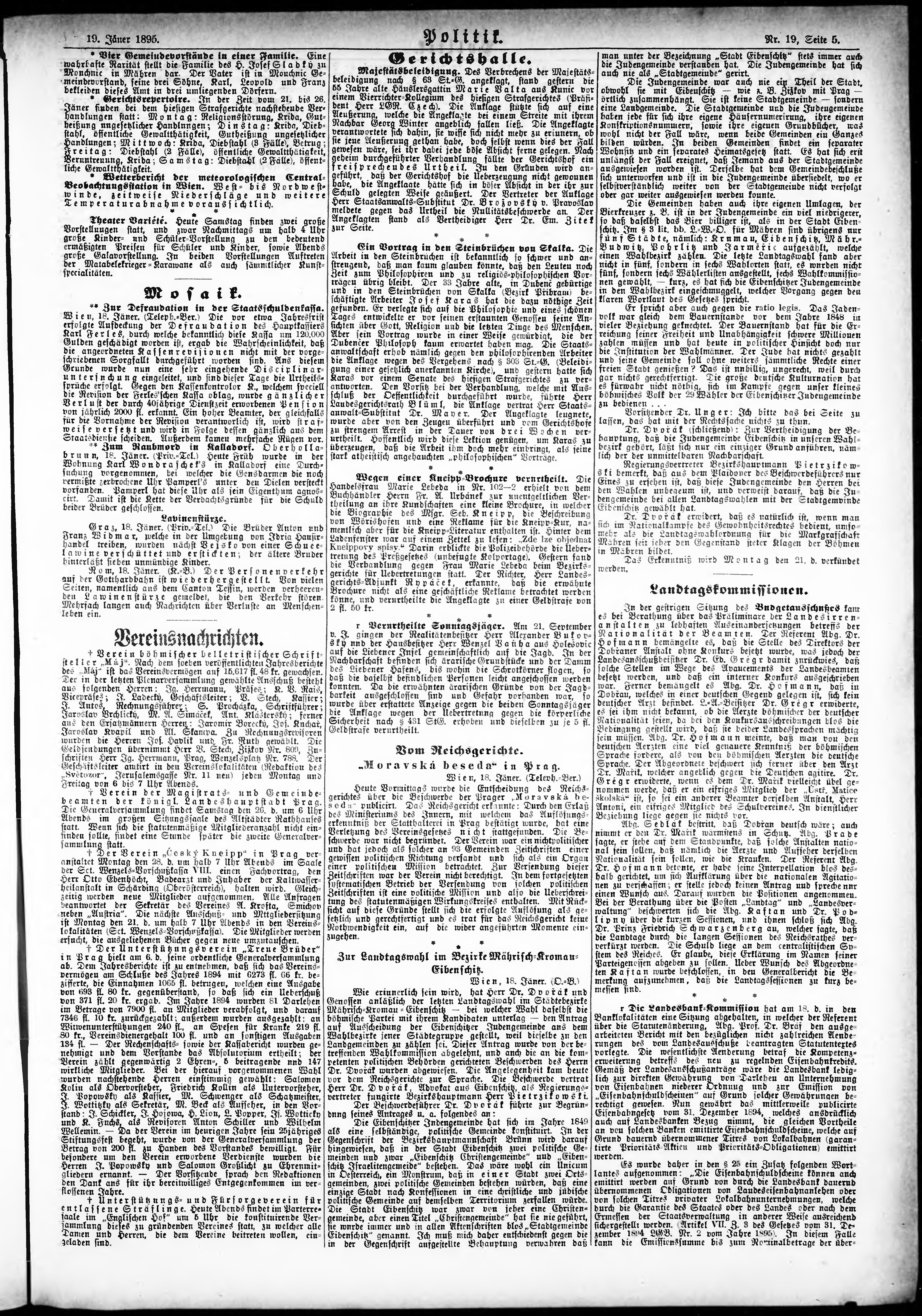 * Datum vydání výtisku: 19.1.1895 Číslo výtisku: 19 Poznámky k výtisku: ranní vydání;