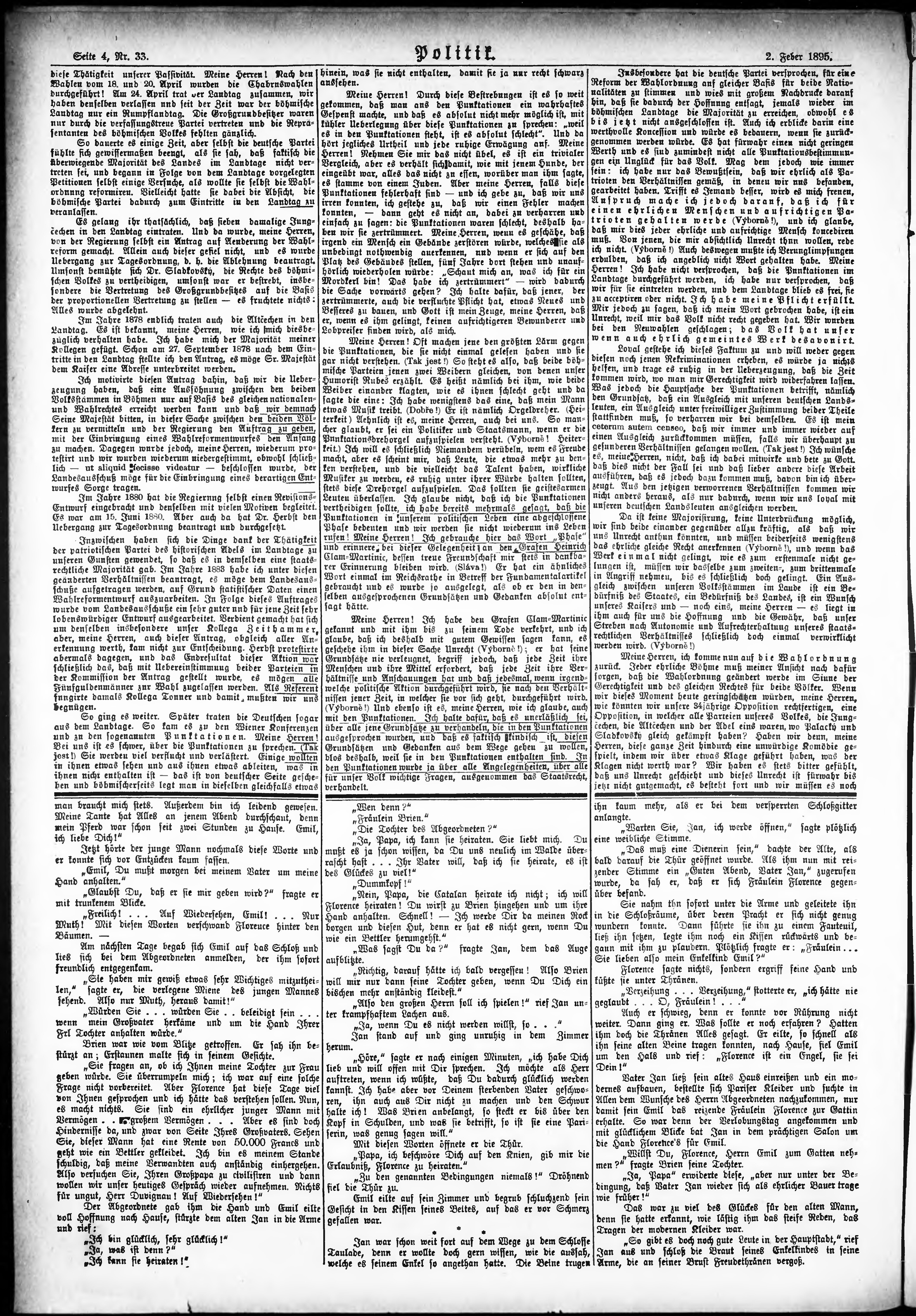 * Datum vydání výtisku: 2.2.1895 Číslo výtisku: 33 Poznámky k výtisku: ranní vydání;