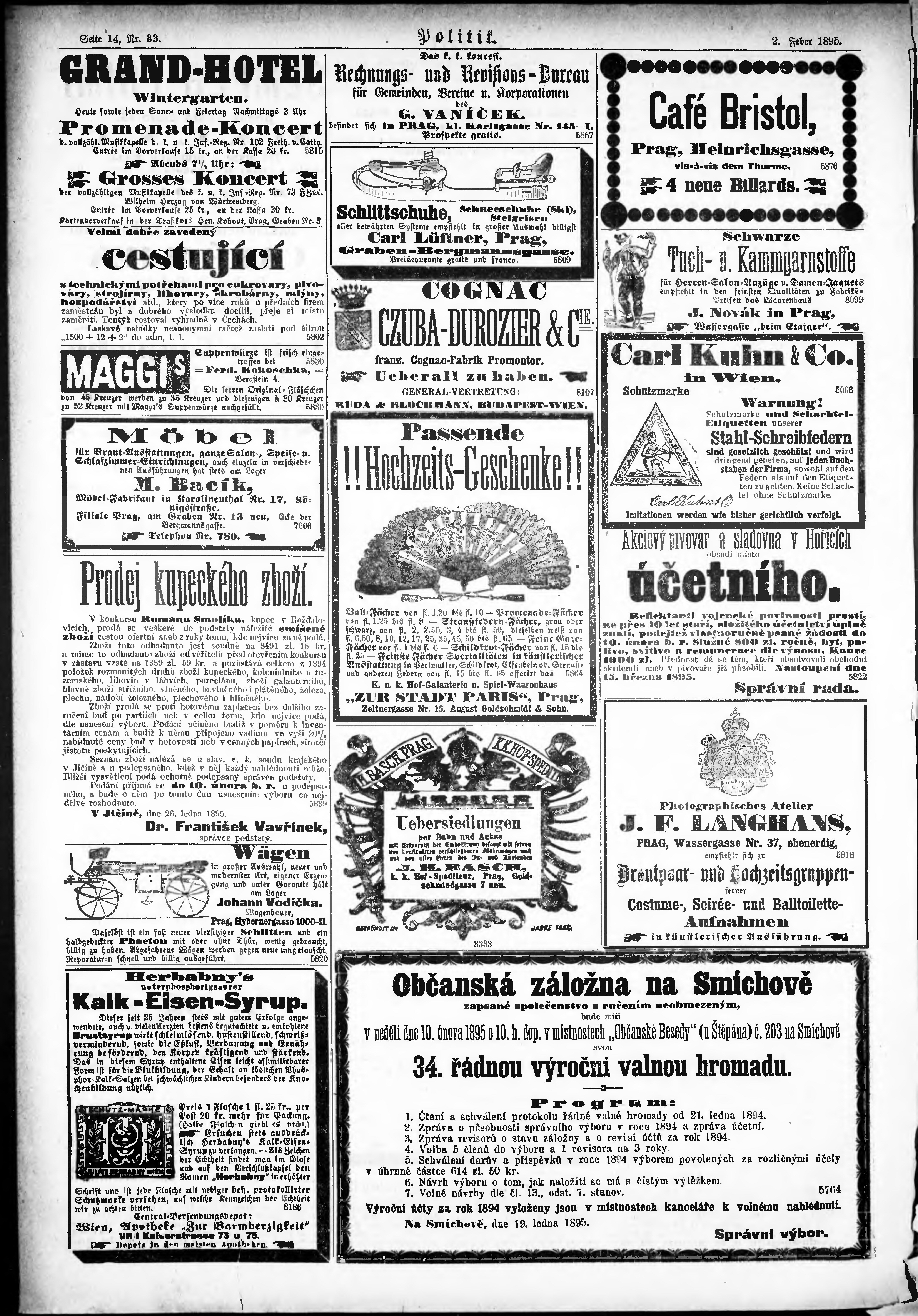 * Datum vydání výtisku: 2.2.1895 Číslo výtisku: 33 Poznámky k výtisku: ranní vydání;