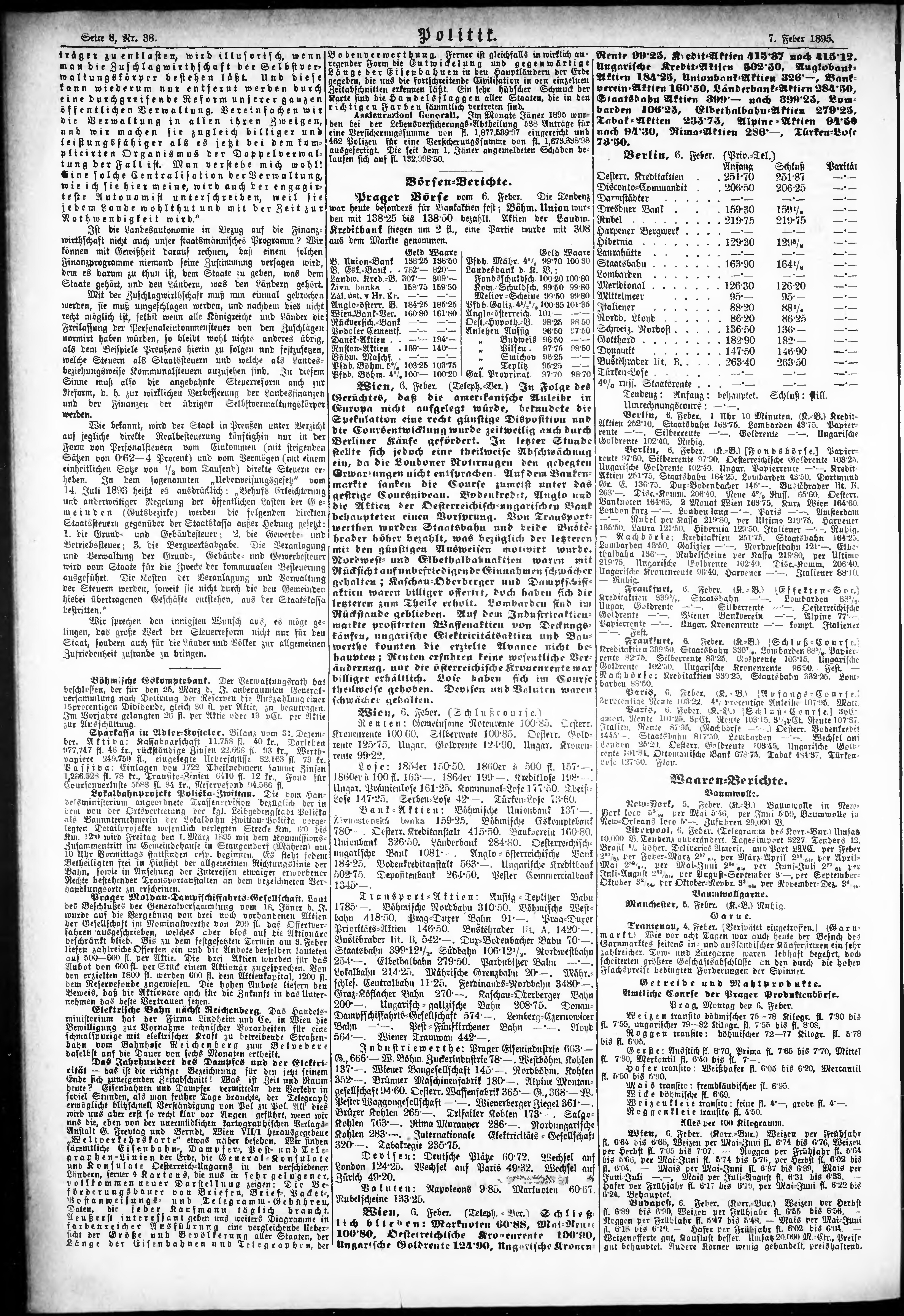 * Datum vydání výtisku: 7.2.1895 Číslo výtisku: 38 Poznámky k výtisku: ranní vydání;