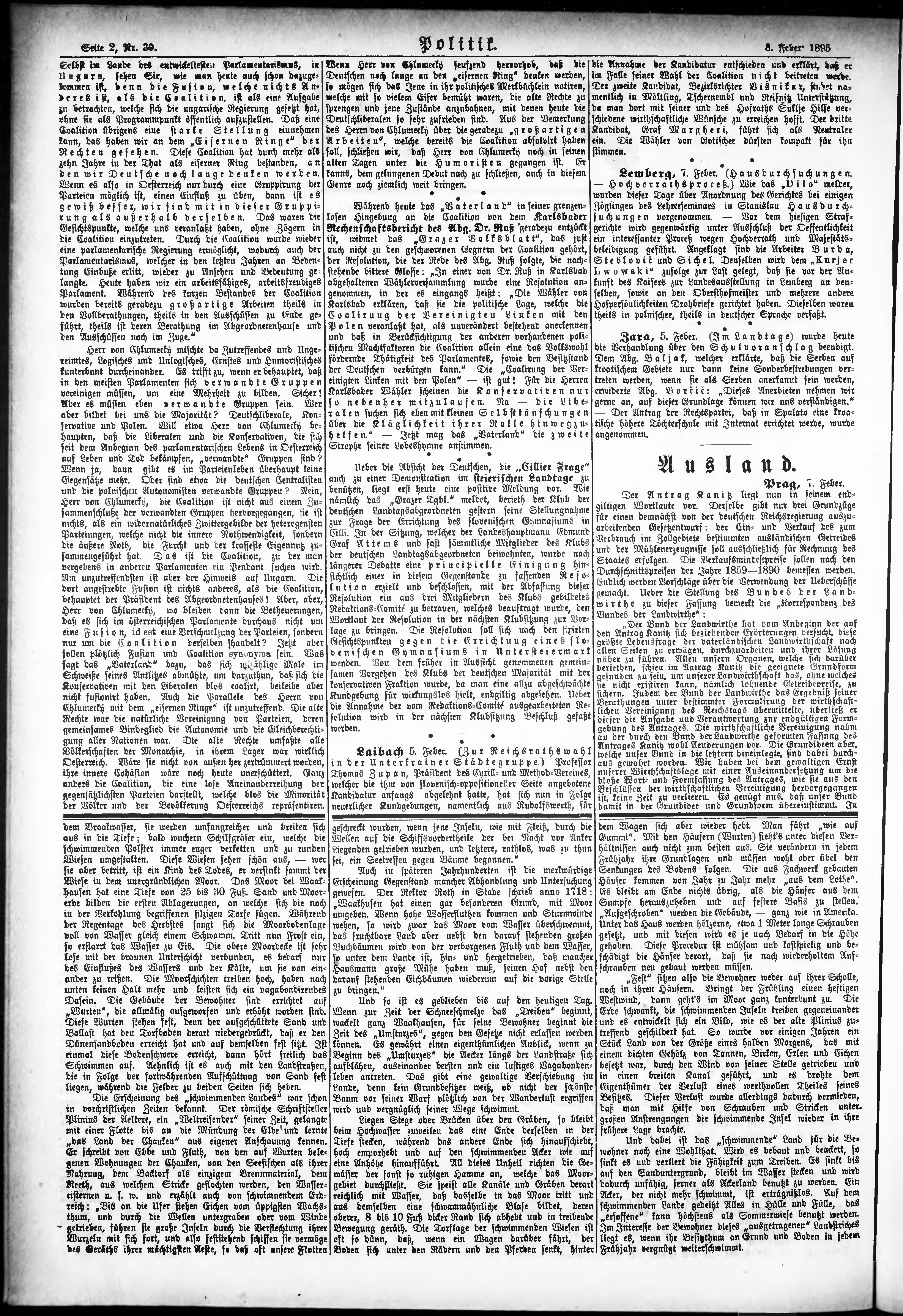 * Datum vydání výtisku: 8.2.1895 Číslo výtisku: 39 Poznámky k výtisku: ranní vydání;