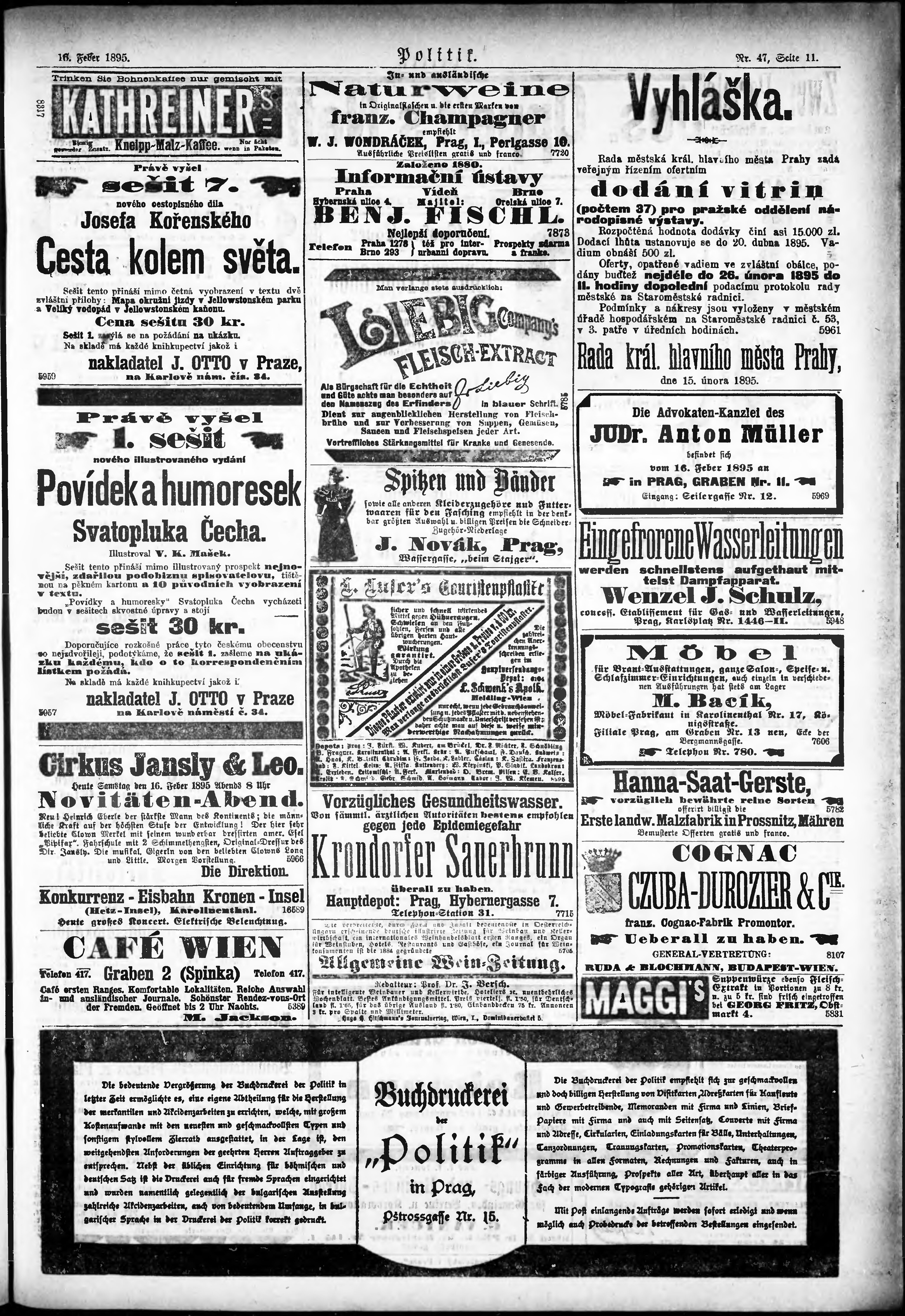 * Datum vydání výtisku: 16.2.1895 Číslo výtisku: 47 Poznámky k výtisku: ranní vydání;