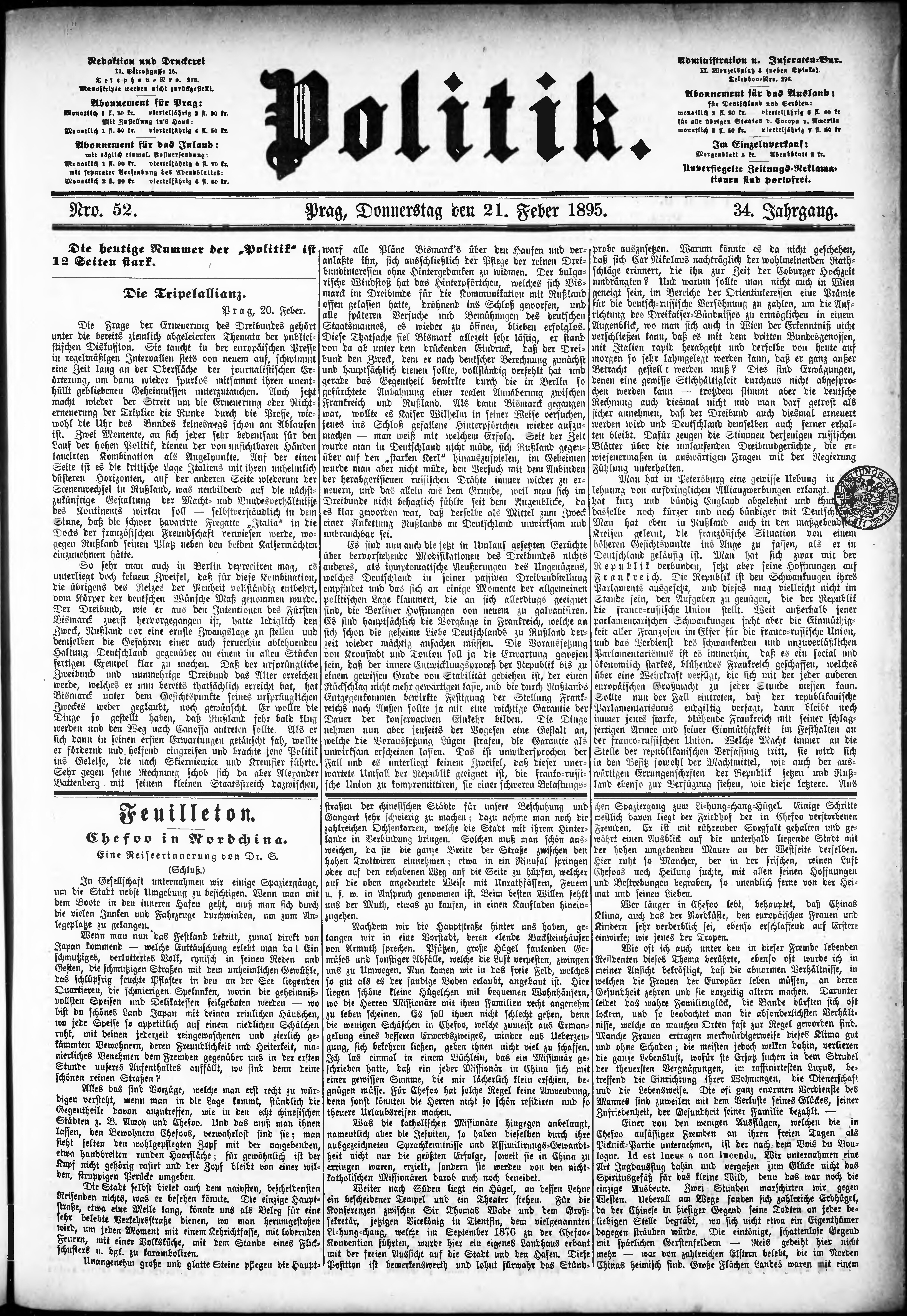 * Datum vydání výtisku: 21.2.1895 Číslo výtisku: 52 Poznámky k výtisku: ranní vydání;