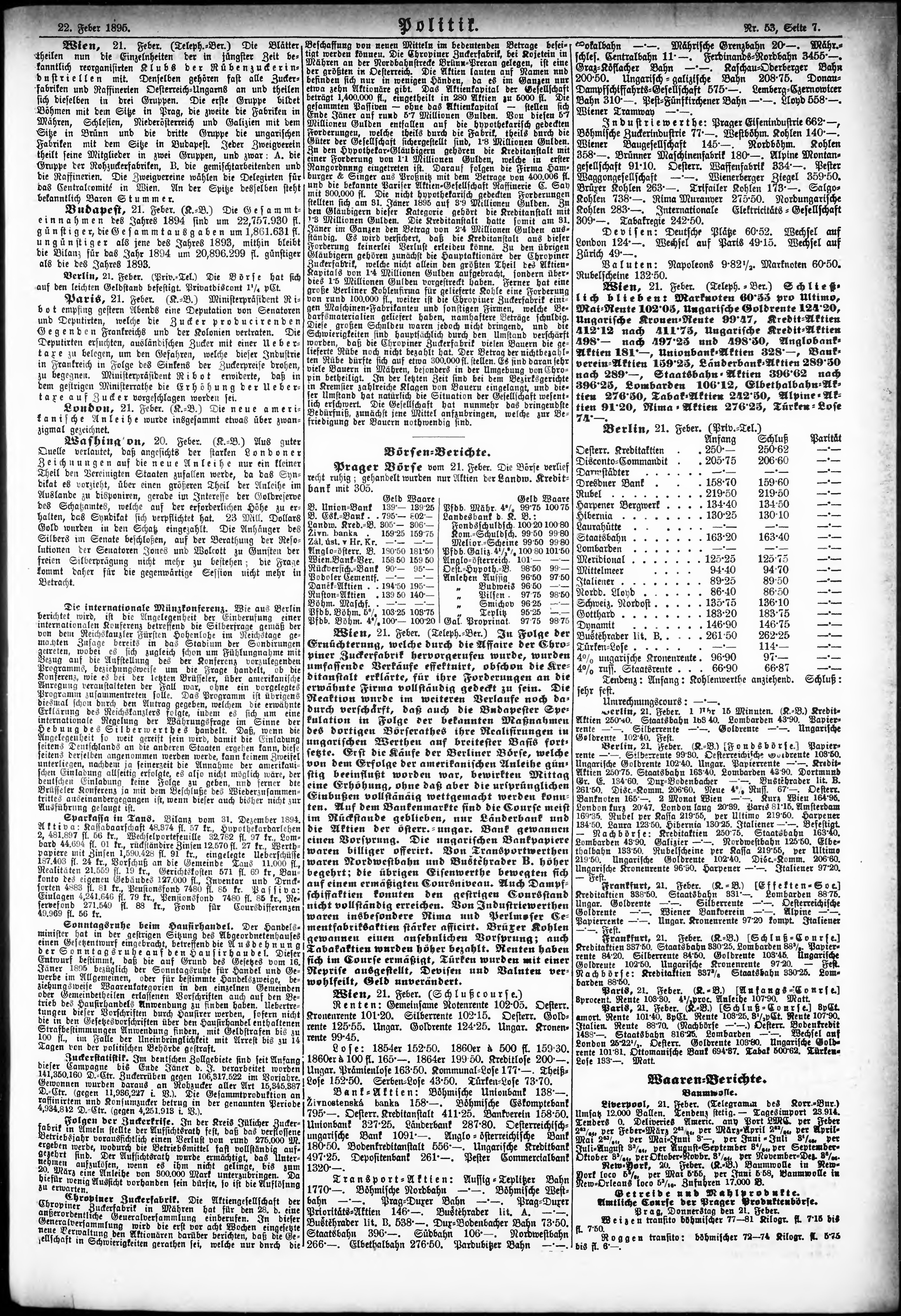 * Datum vydání výtisku: 22.2.1895 Číslo výtisku: 53 Poznámky k výtisku: ranní vydání;