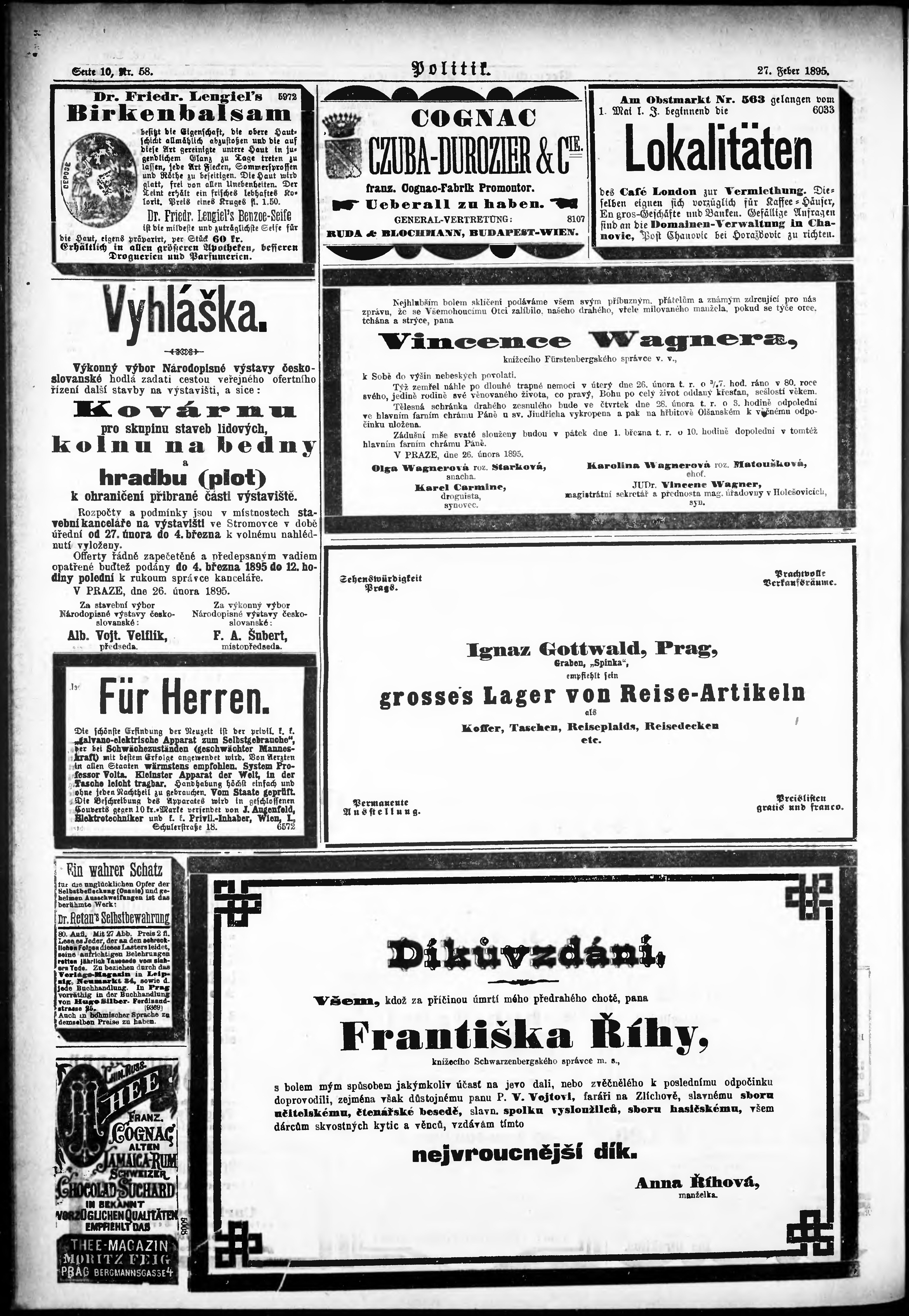 * Datum vydání výtisku: 27.2.1895 Číslo výtisku: 58 Poznámky k výtisku: ranní vydání;