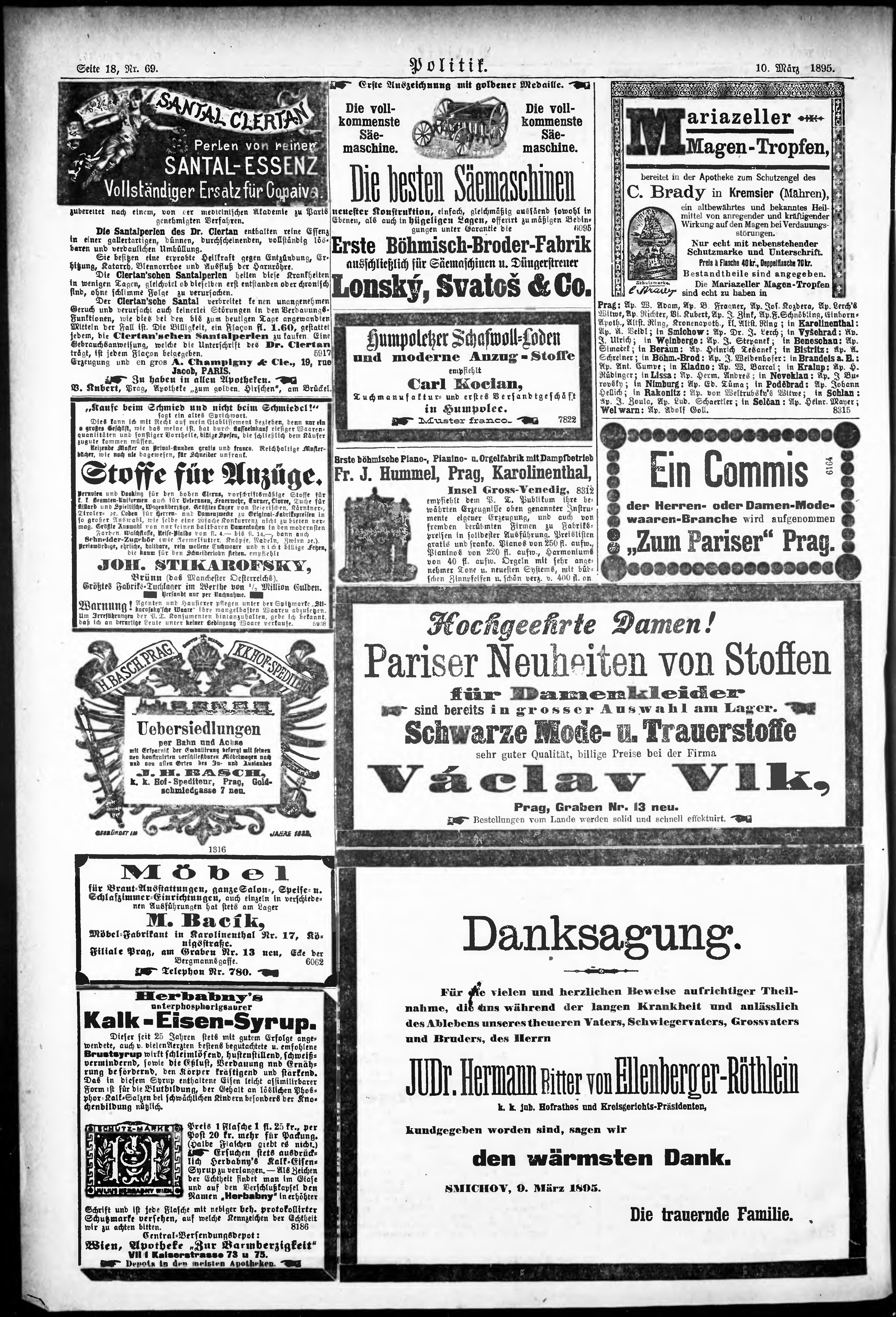 * Datum vydání výtisku: 10.3.1895 Číslo výtisku: 69 Poznámky k výtisku: ranní vydání;