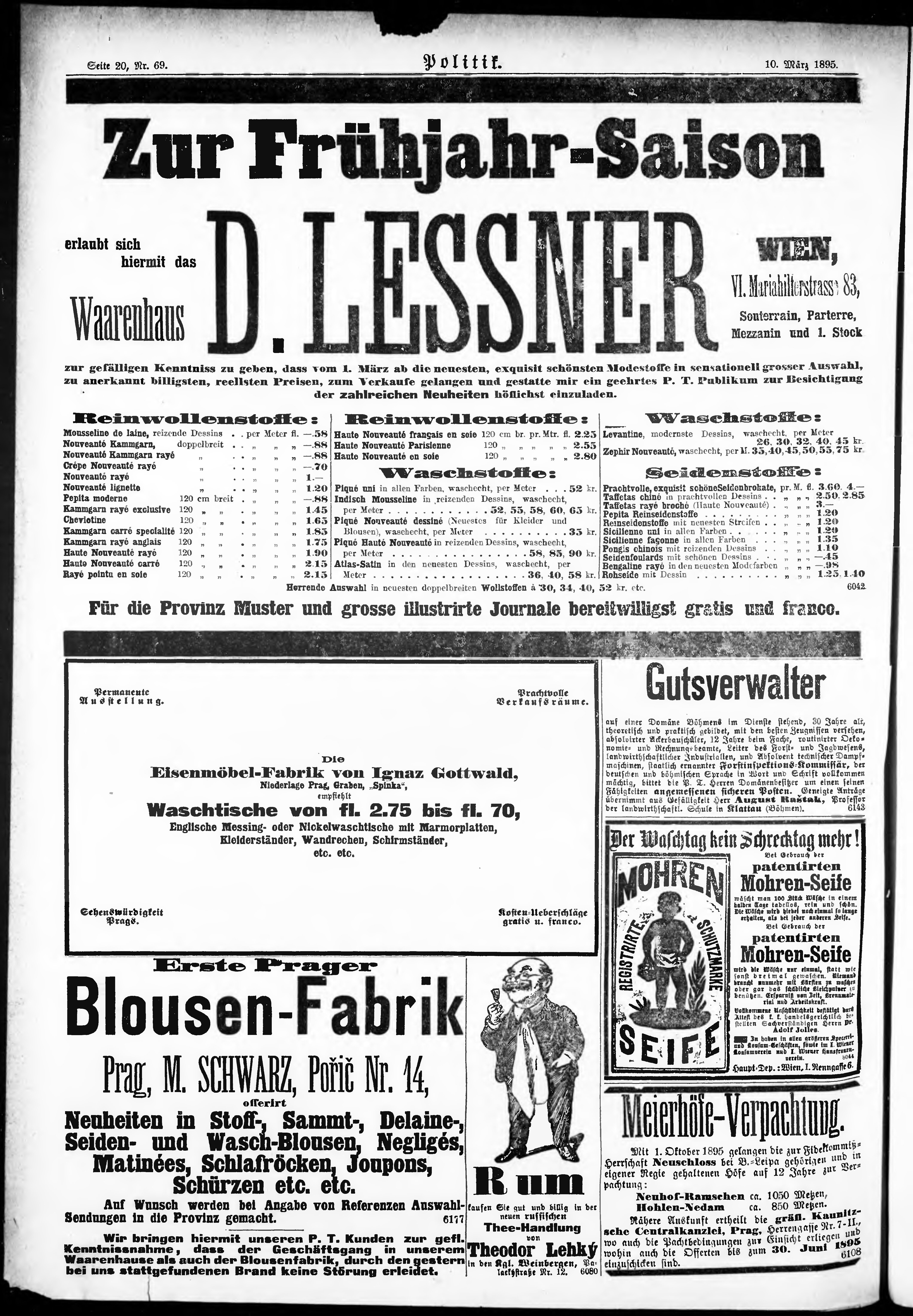 * Datum vydání výtisku: 10.3.1895 Číslo výtisku: 69 Poznámky k výtisku: ranní vydání;