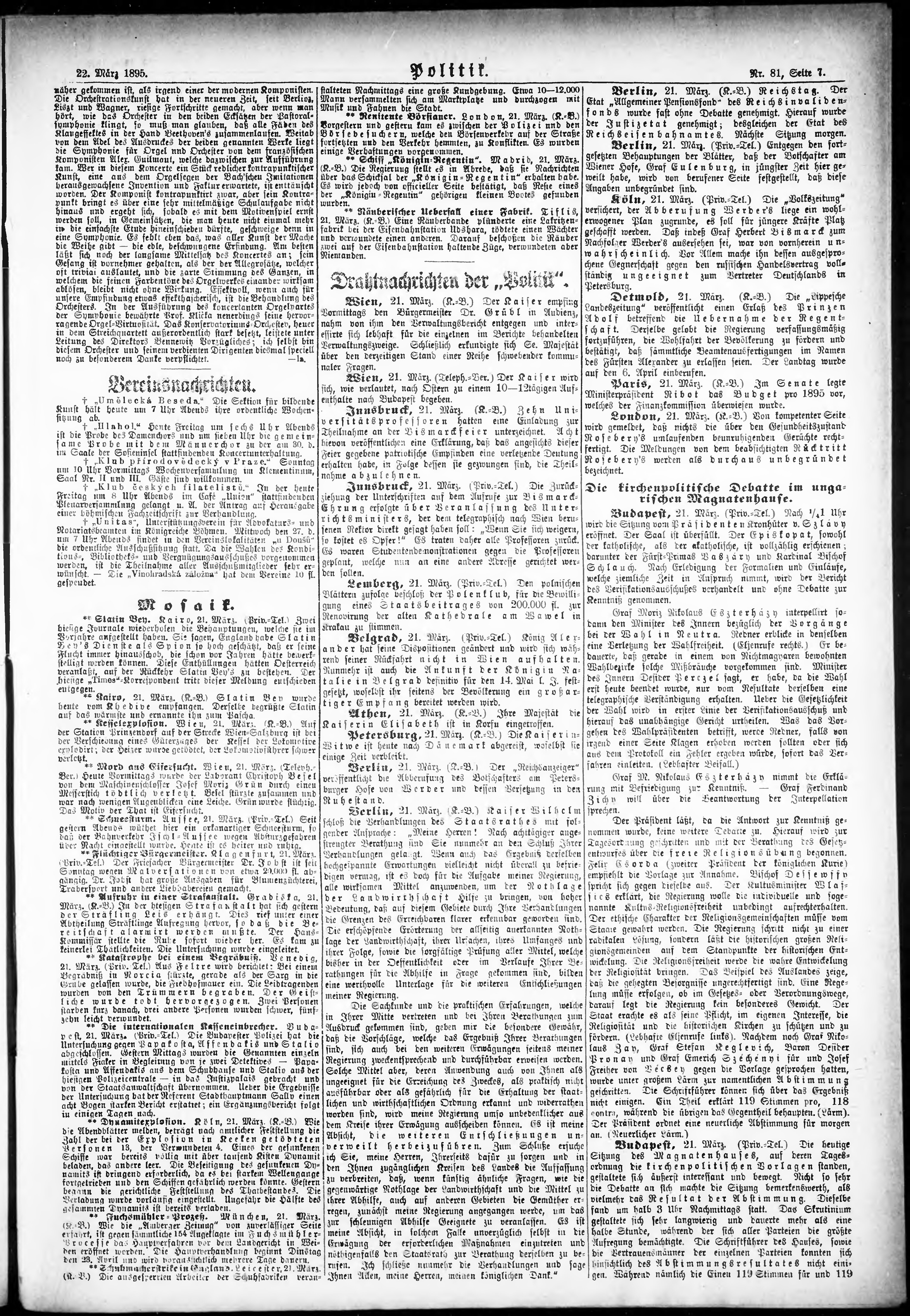 * Datum vydání výtisku: 22.3.1895 Číslo výtisku: 81 Poznámky k výtisku: ranní vydání;