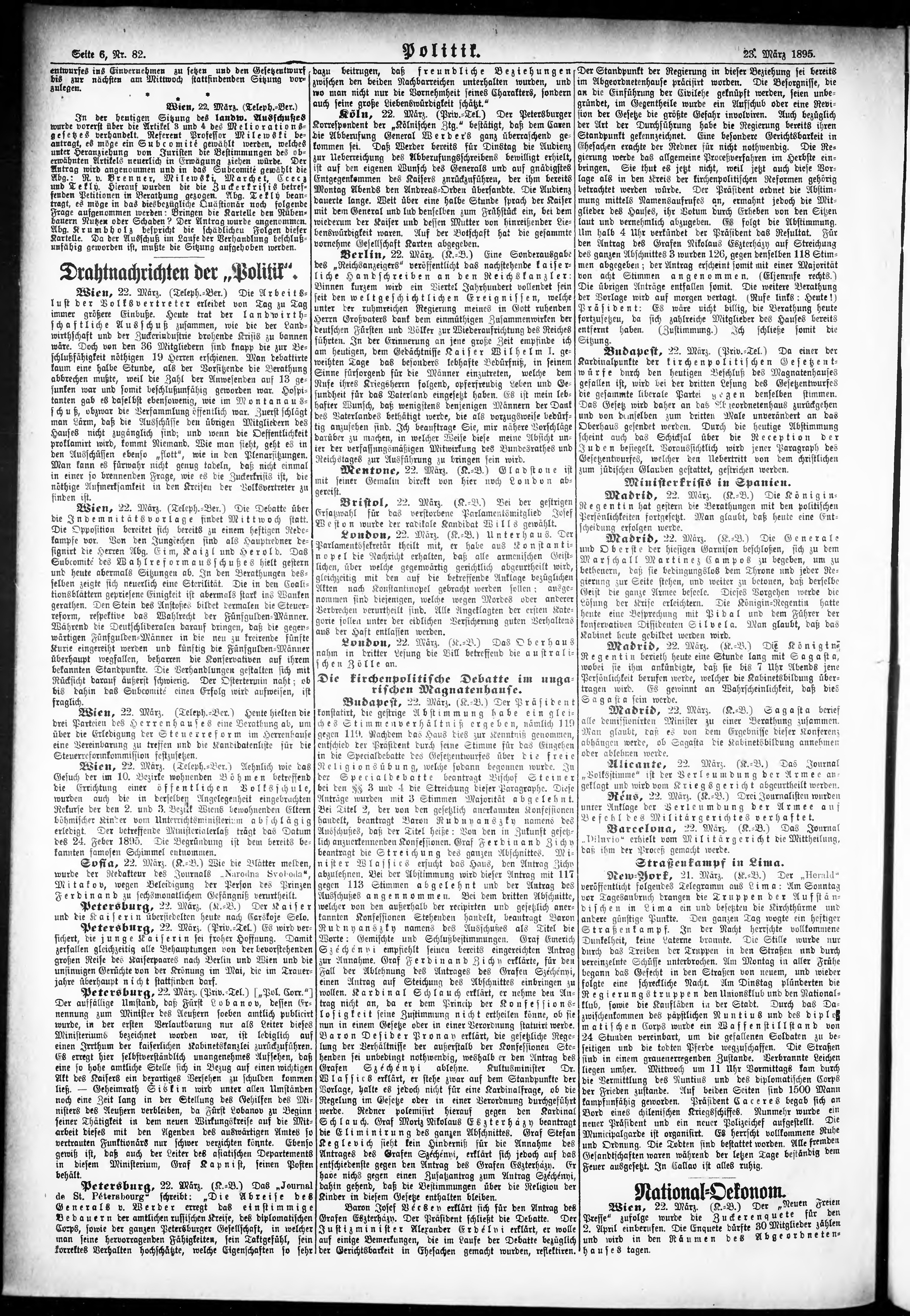 * Datum vydání výtisku: 23.3.1895 Číslo výtisku: 82 Poznámky k výtisku: ranní vydání;